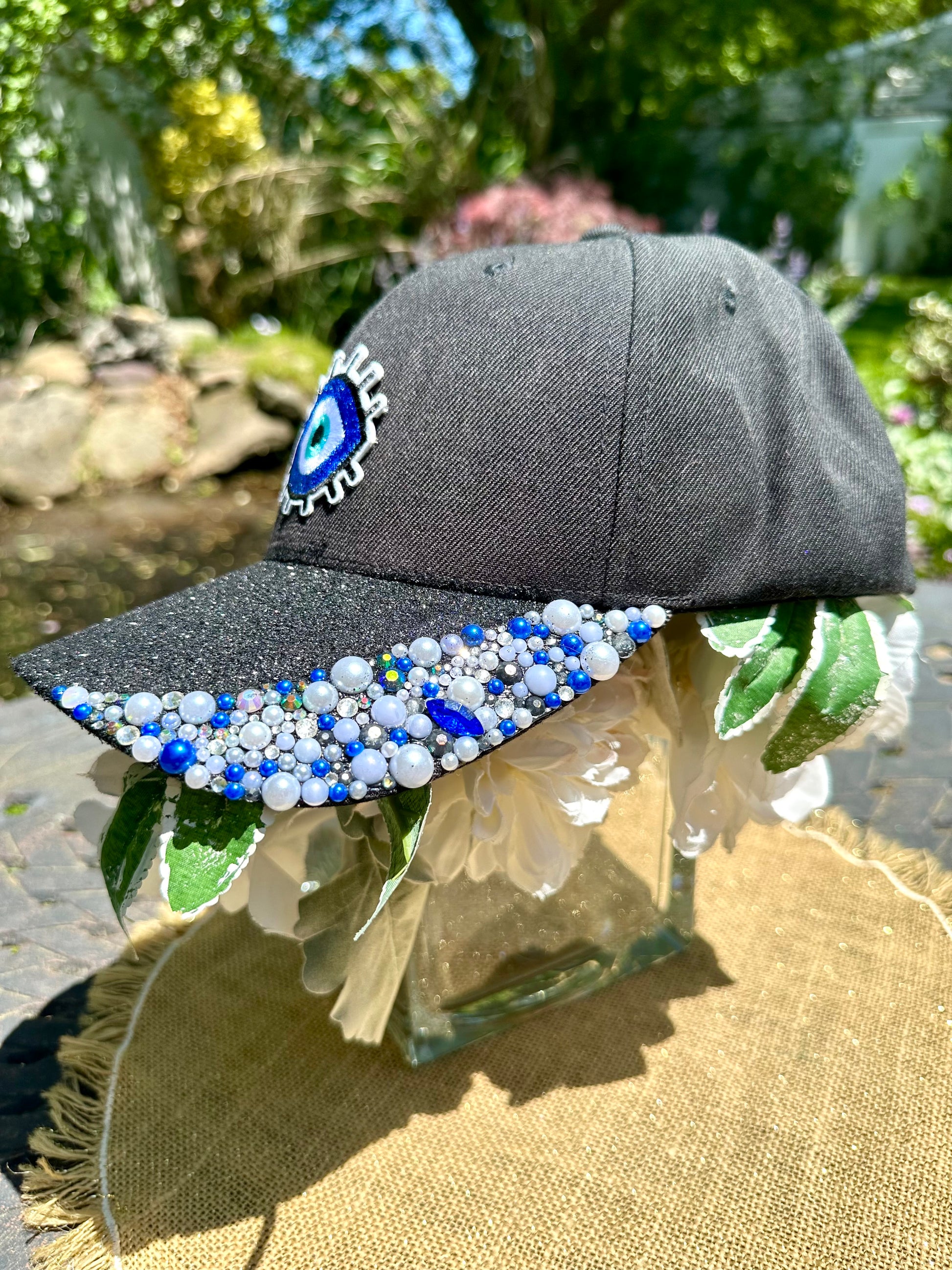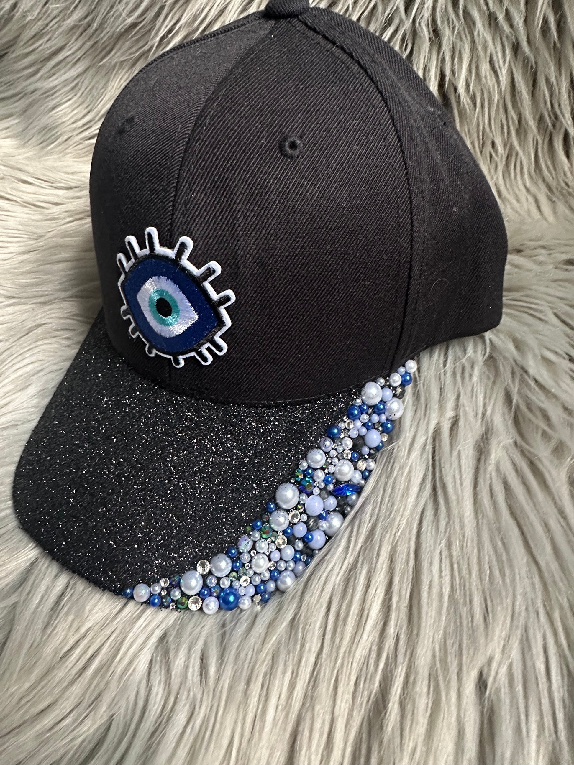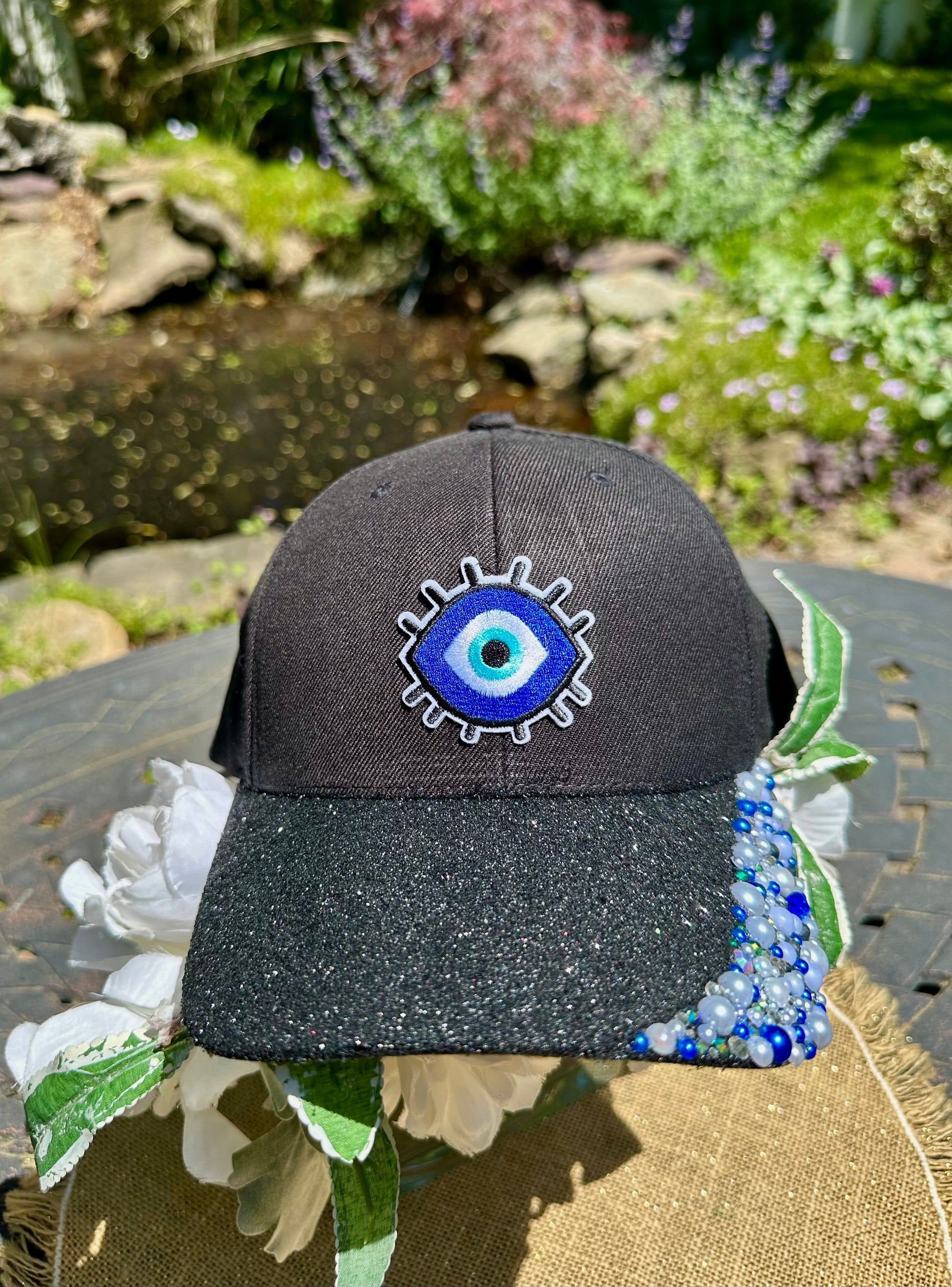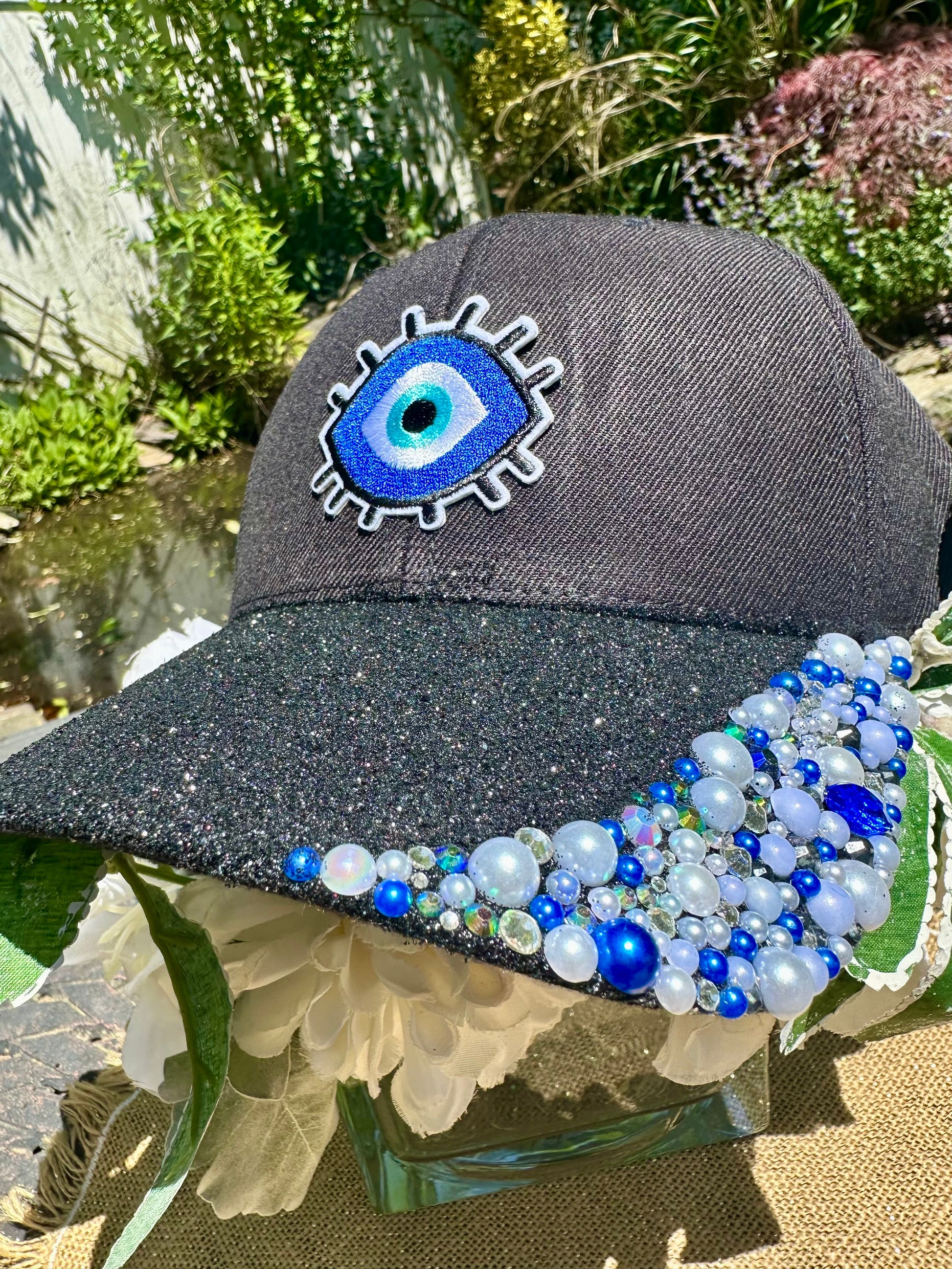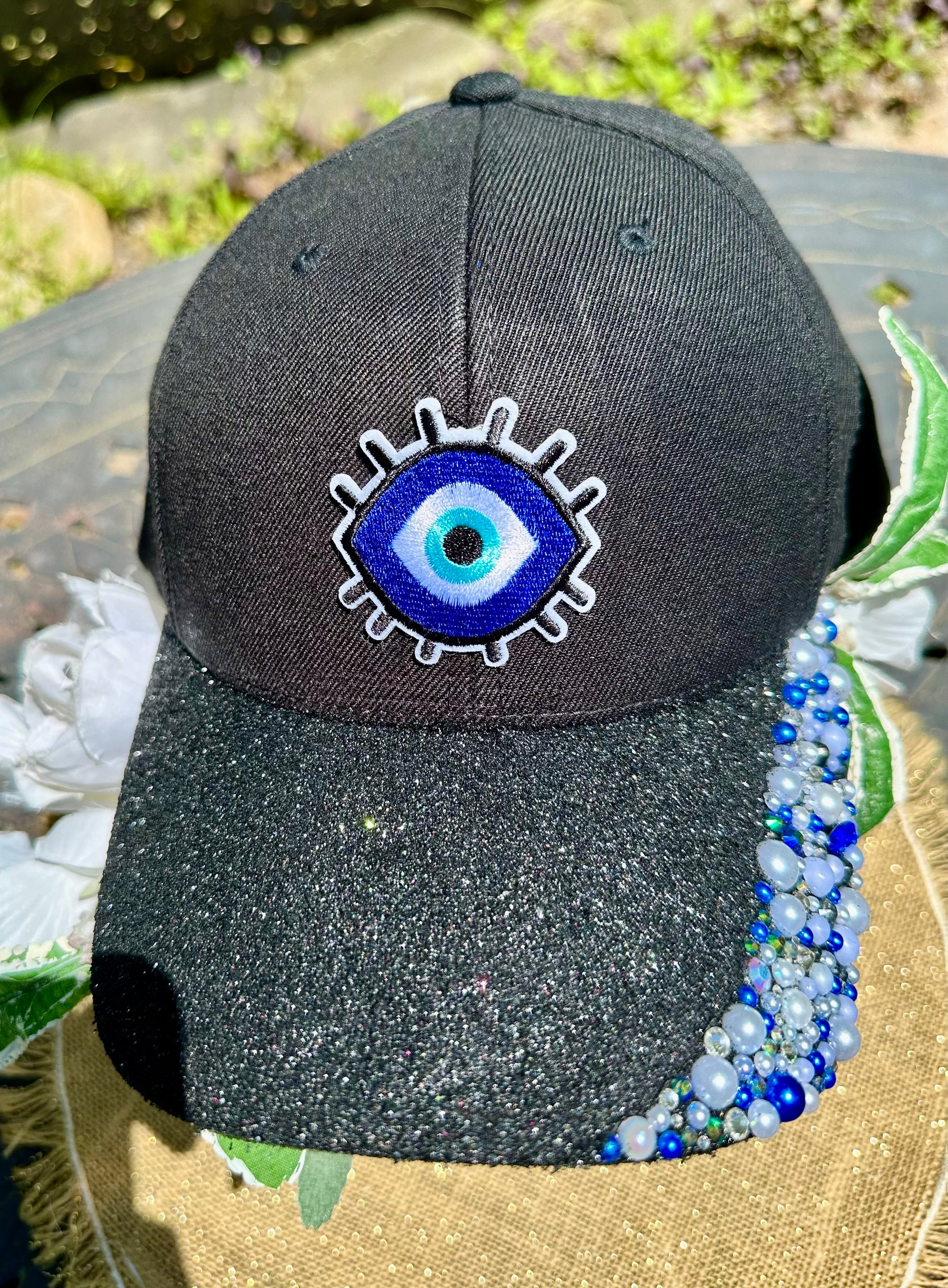 All Seeing Eye Glitter and Rhinestone Bling Black Hat
