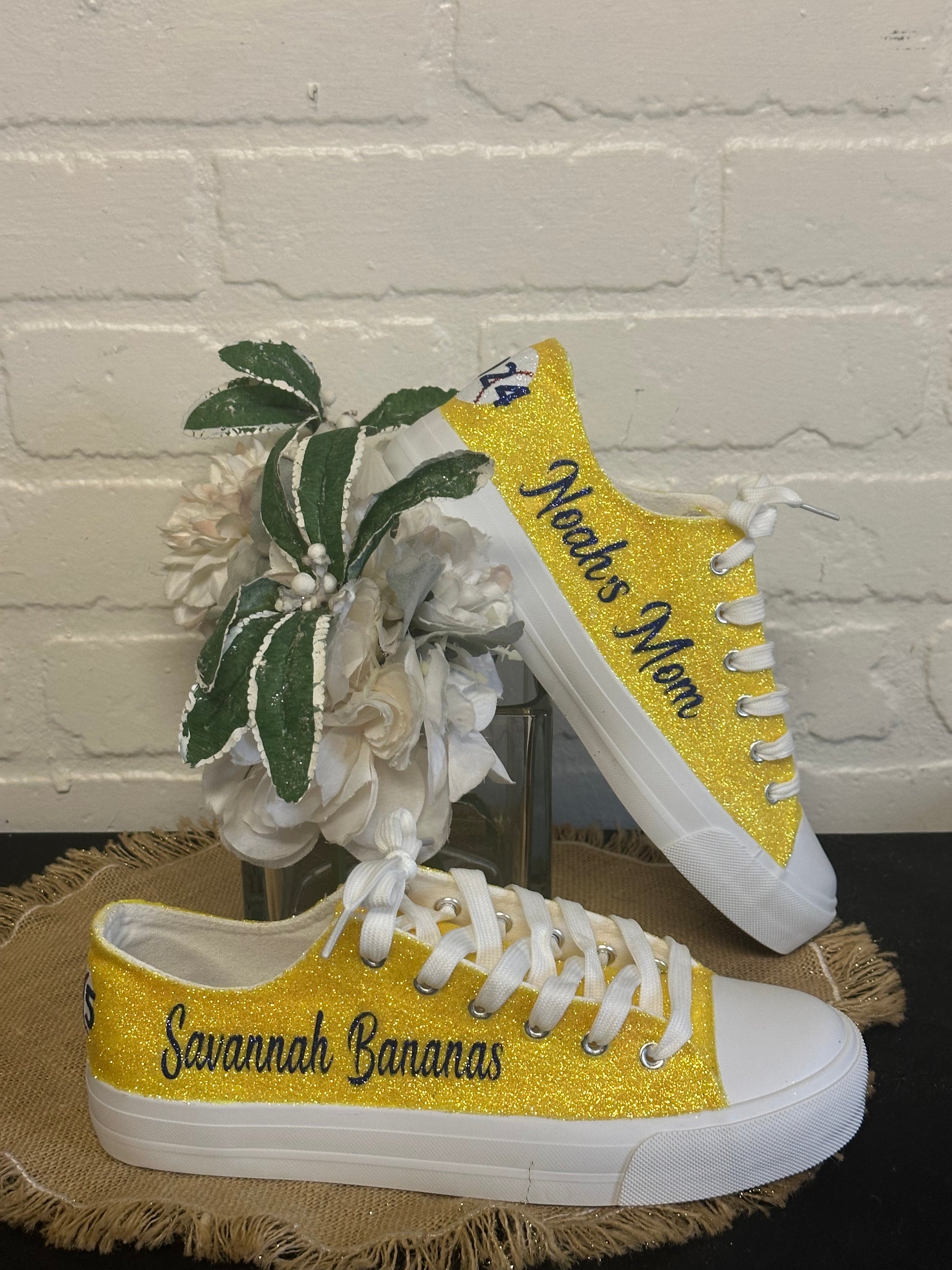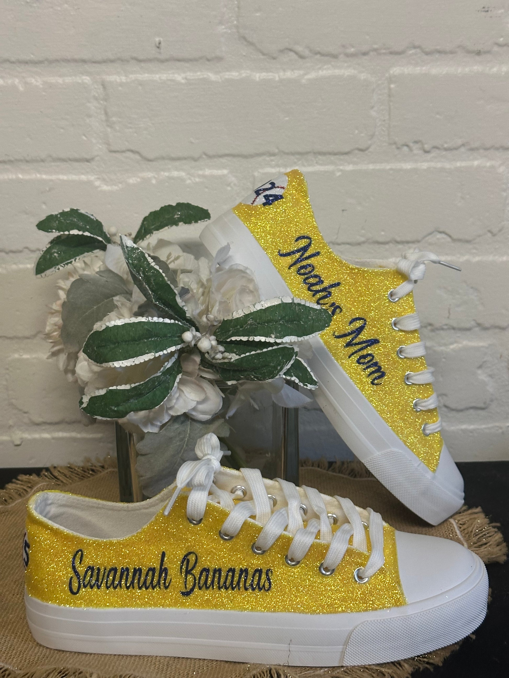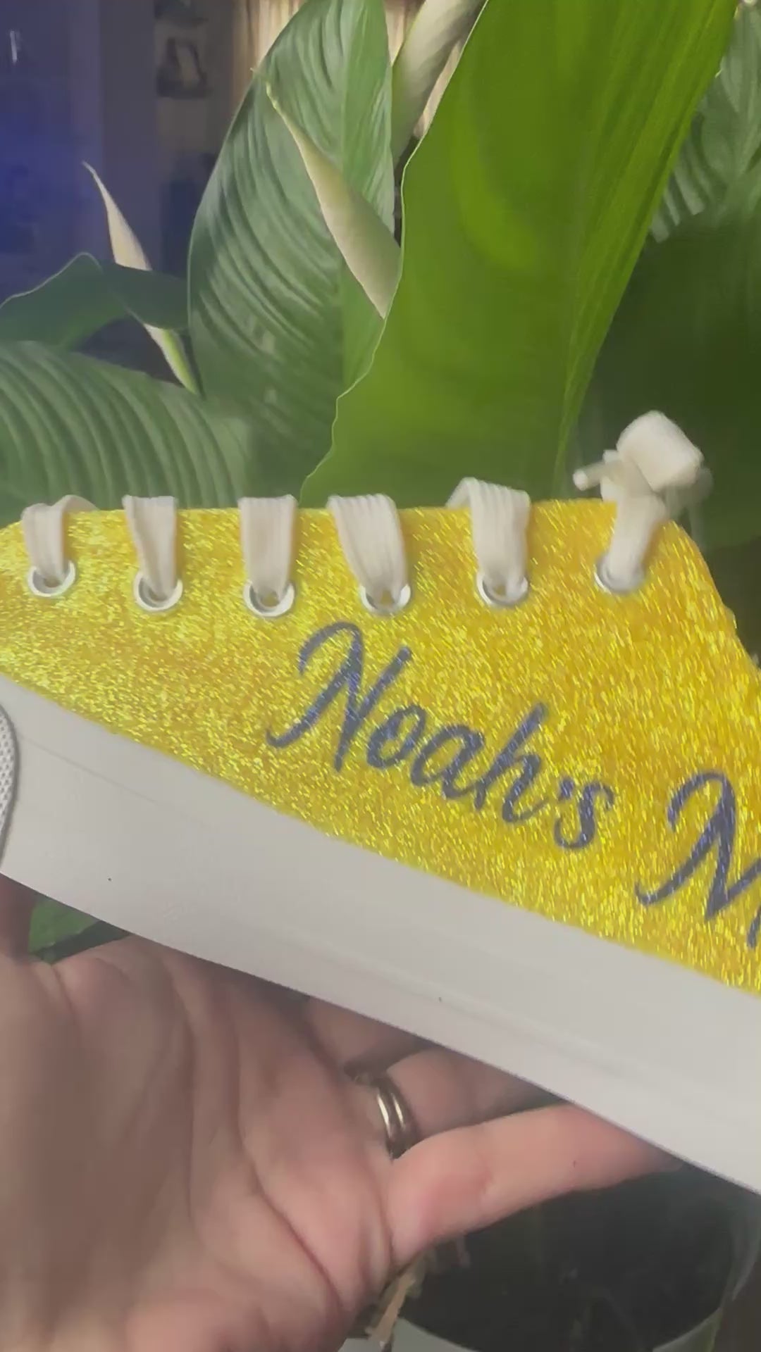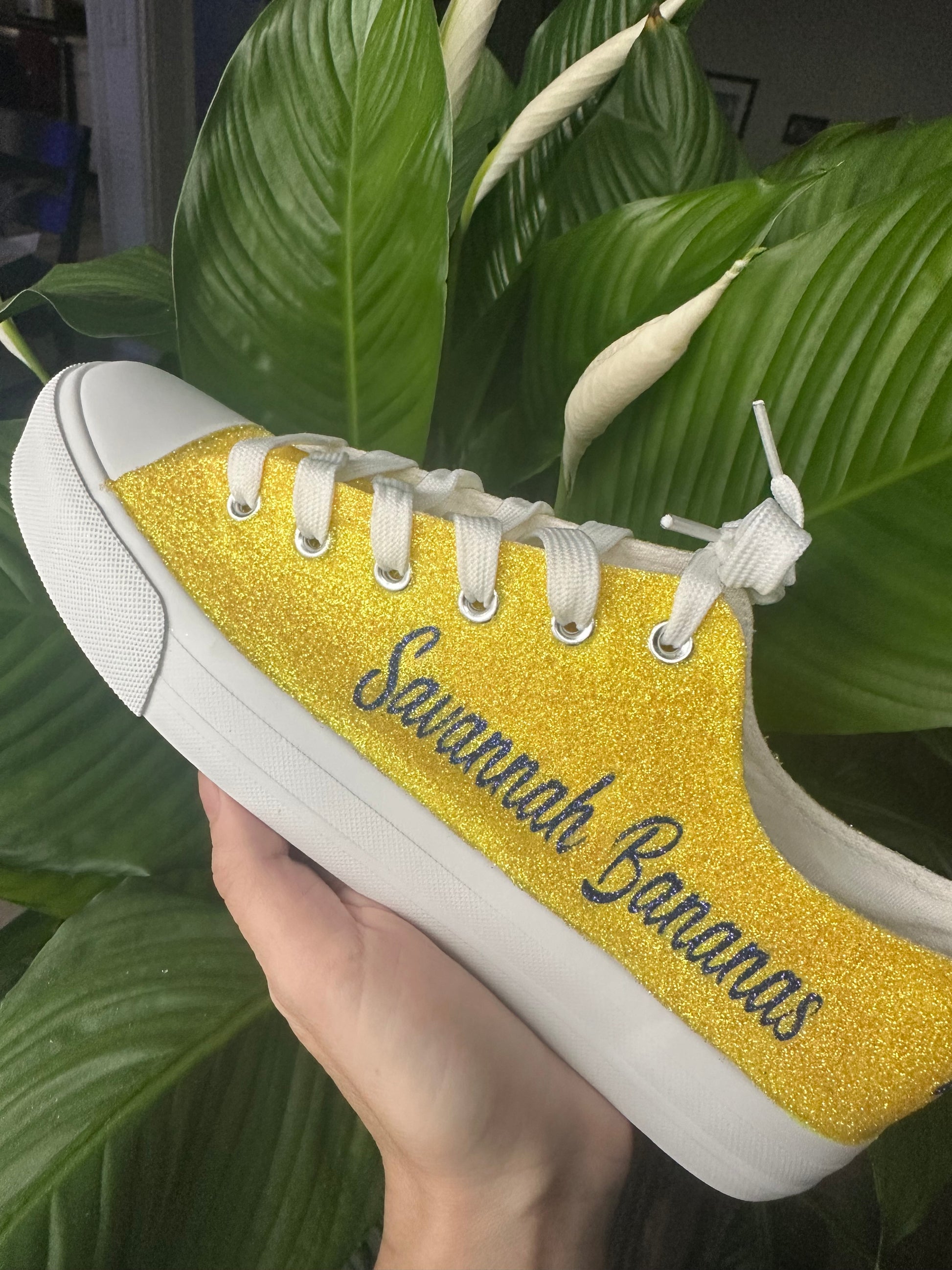 Hand Glittered unbranded canvas sneakers glittered in a gorgeous banana yellow glitter. Made to order.