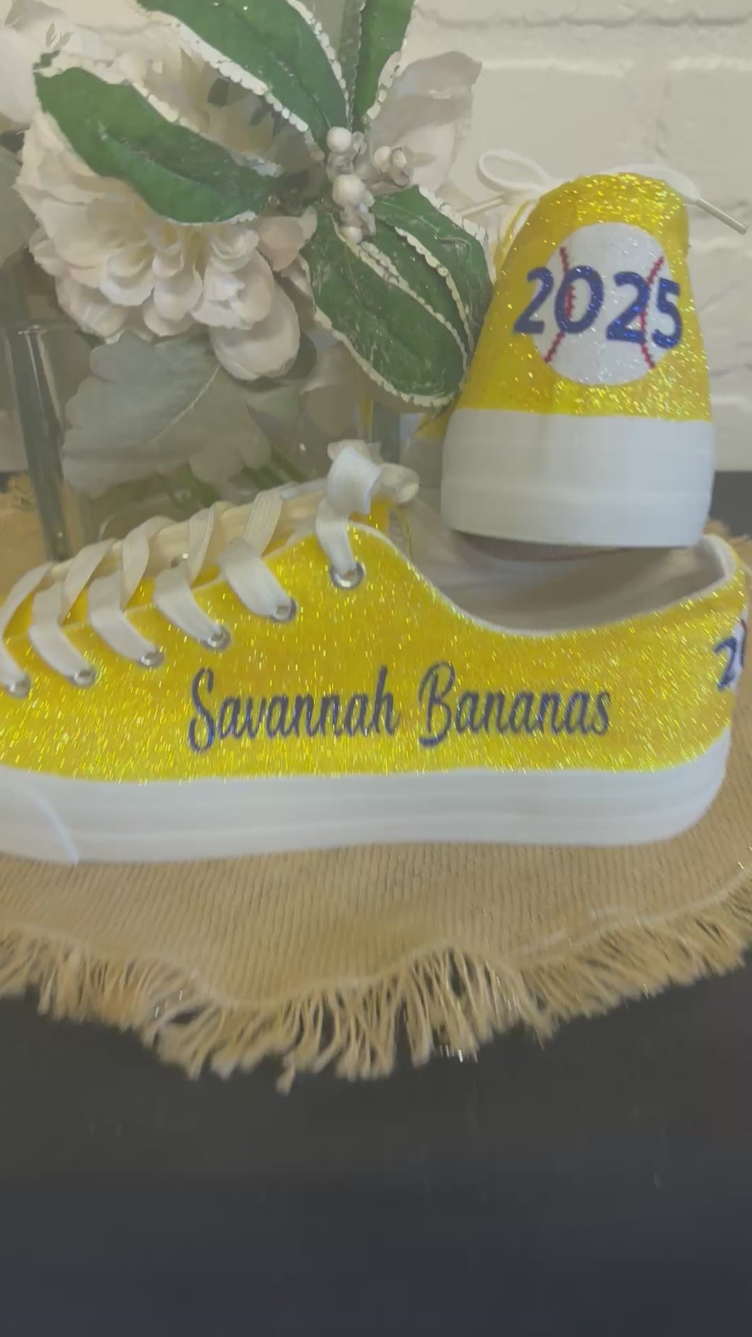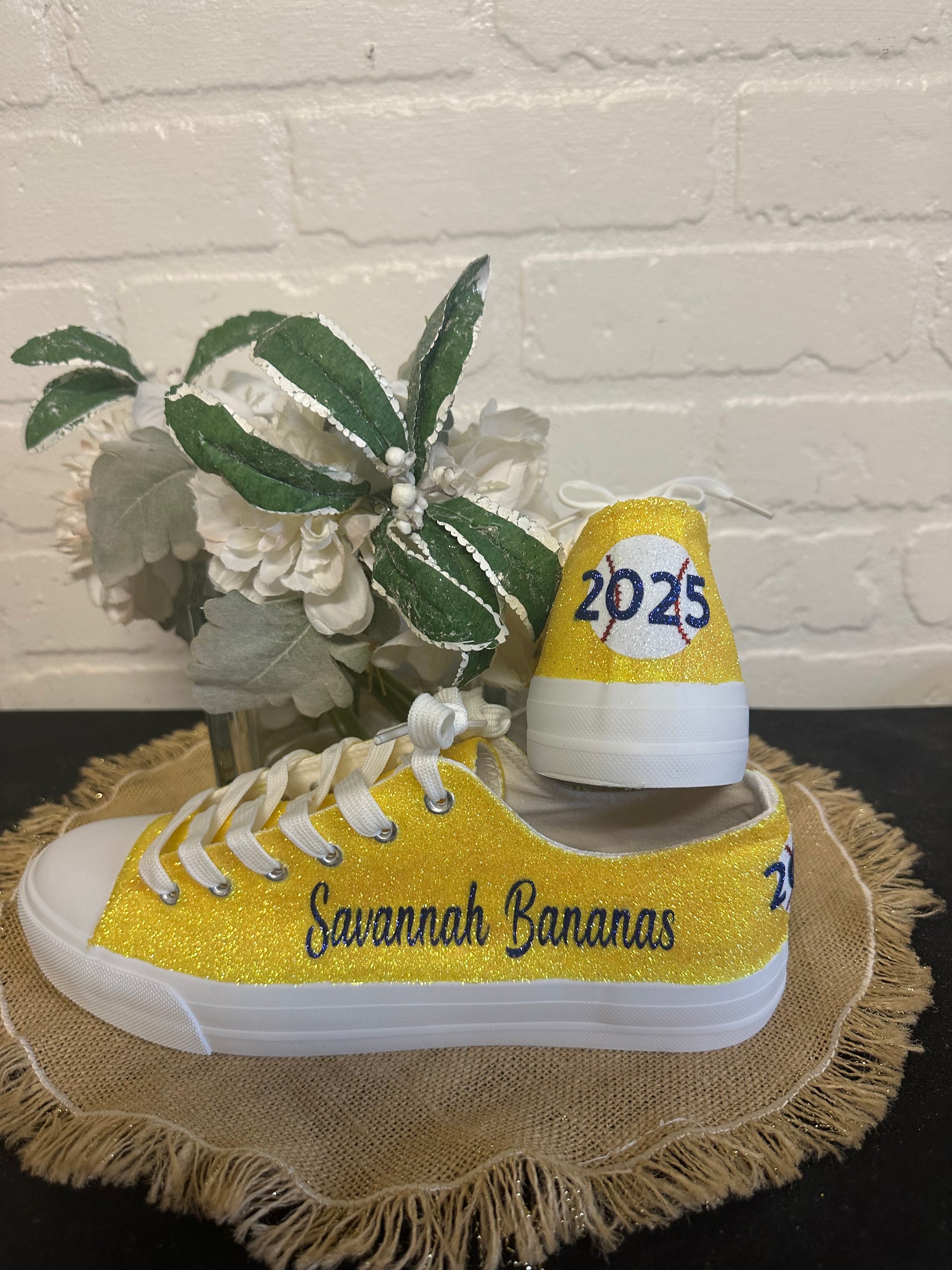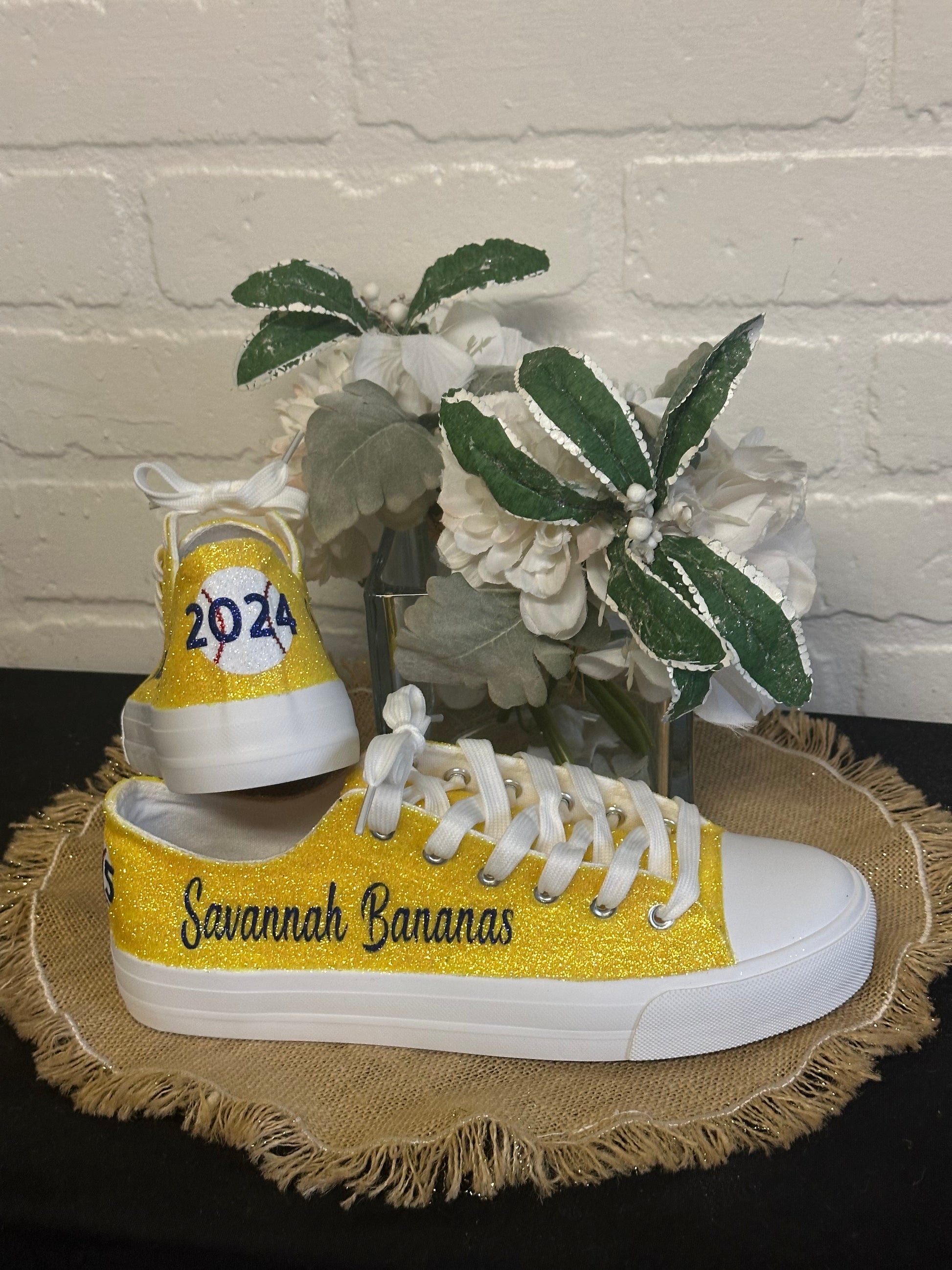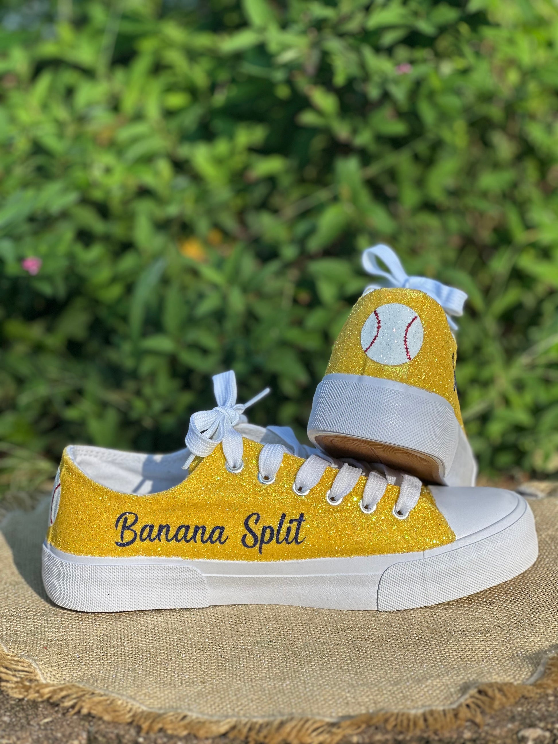 Hand Glittered unbranded canvas sneakers glittered in a gorgeous banana yellow glitter. Made to order.