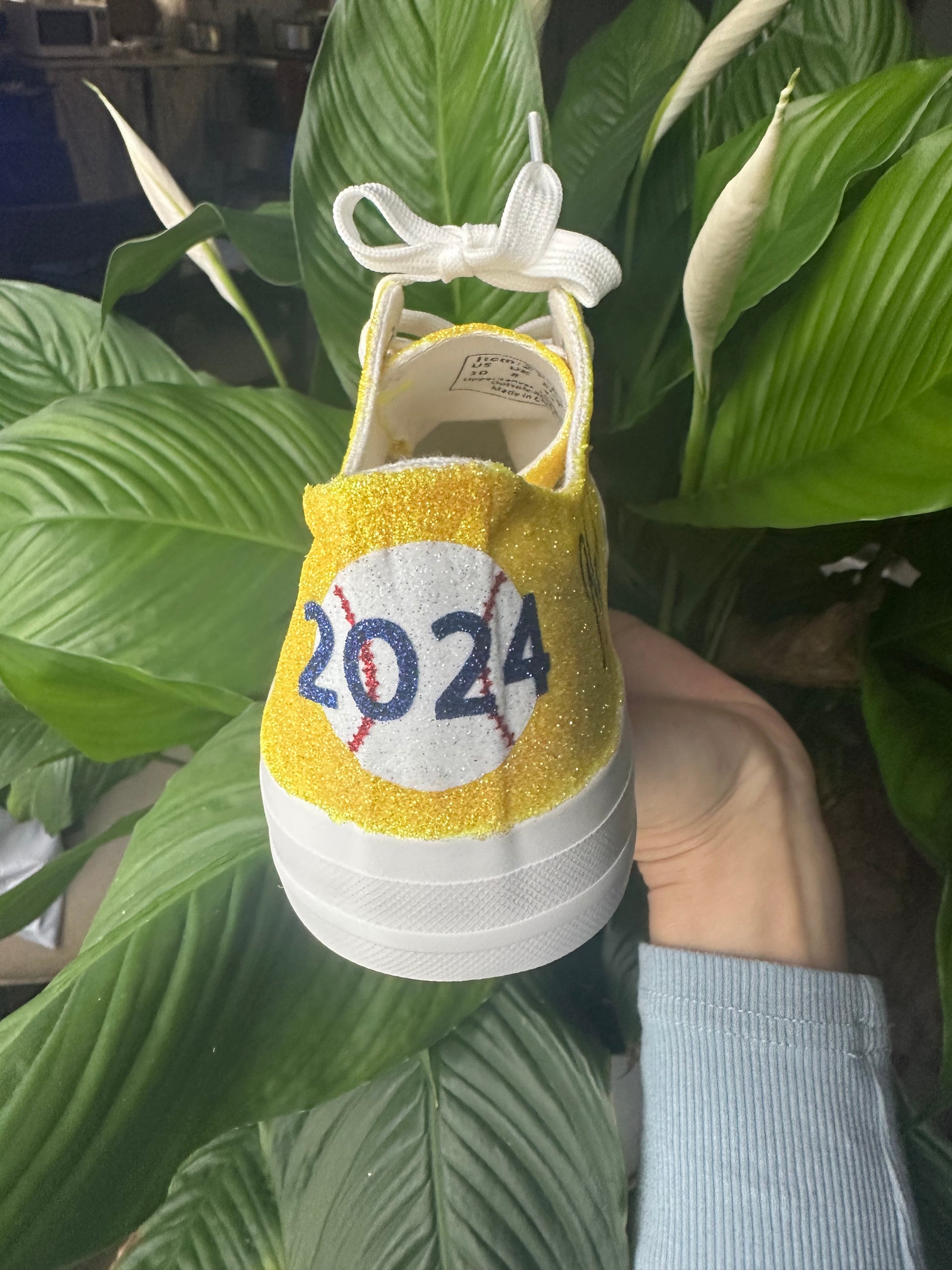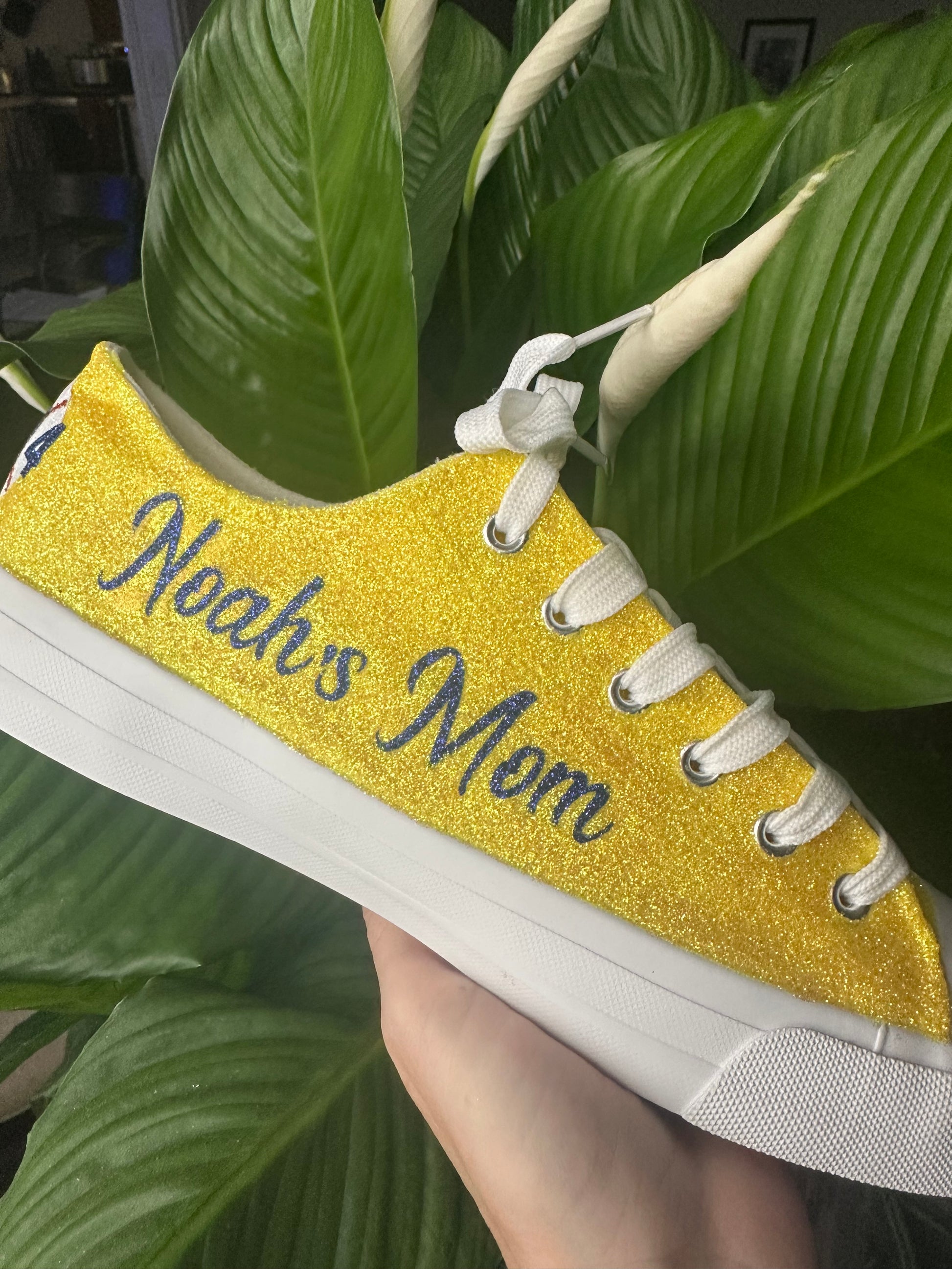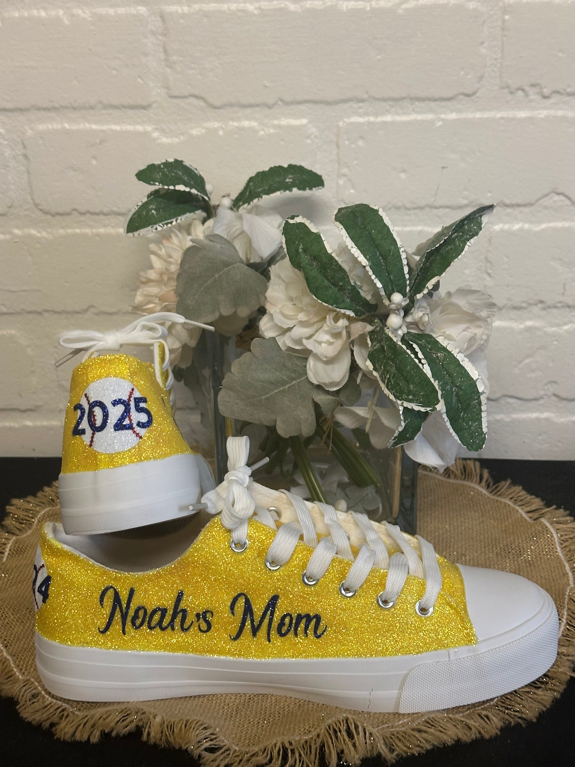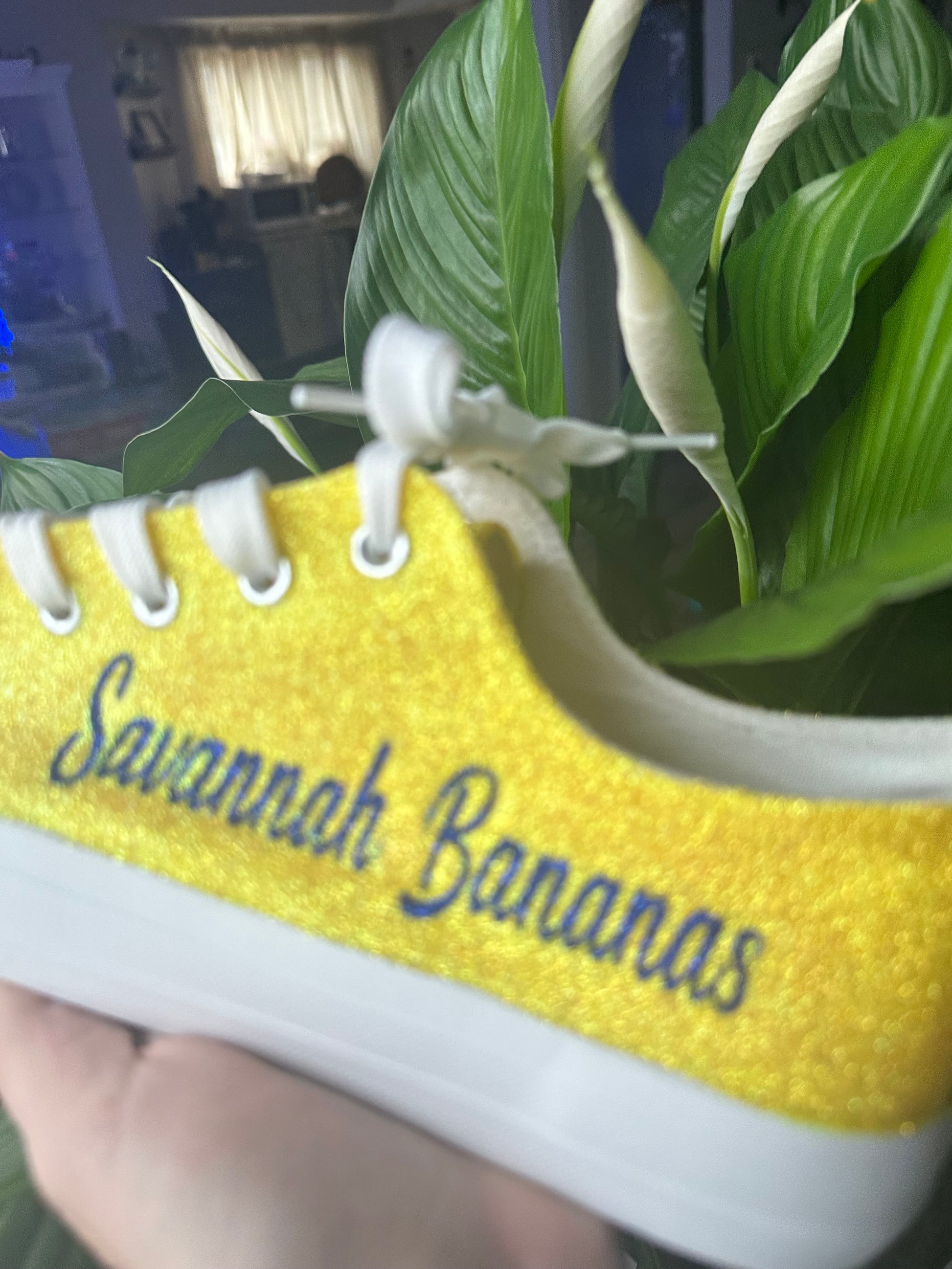 Hand Glittered unbranded canvas sneakers glittered in a gorgeous banana yellow glitter. Made to order.