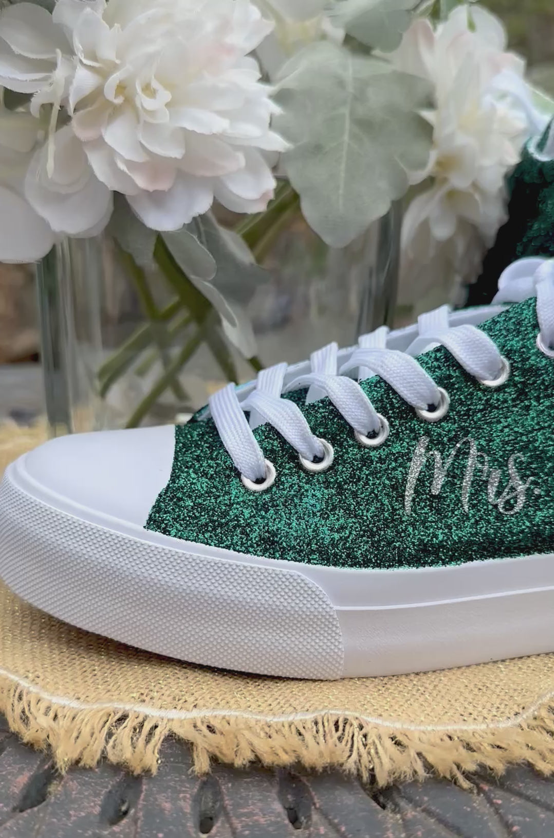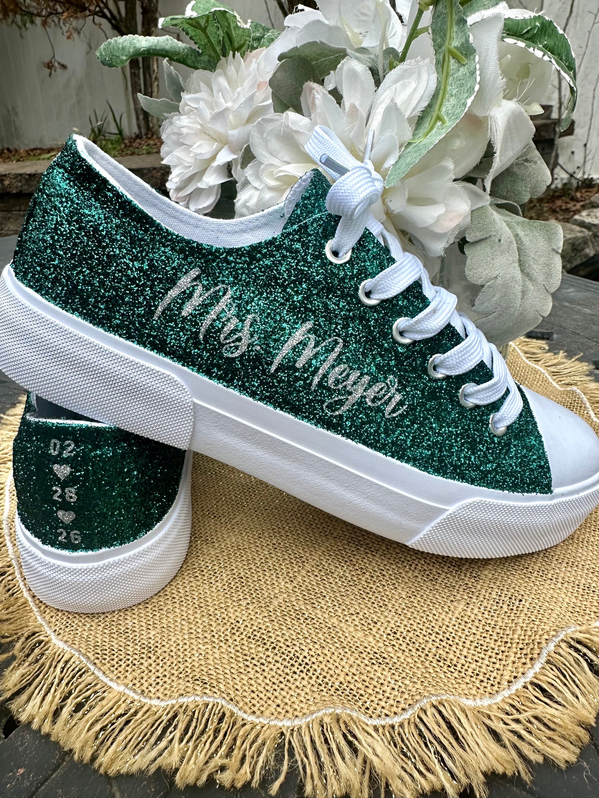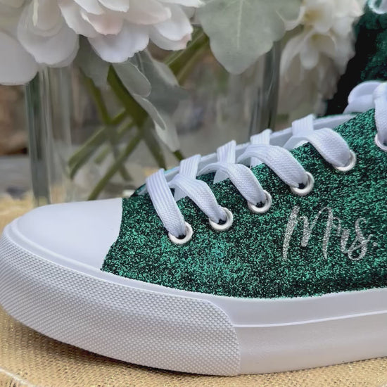 Hunter Green Glitter Wedding Sneakers with Silver Glitter Personalization
