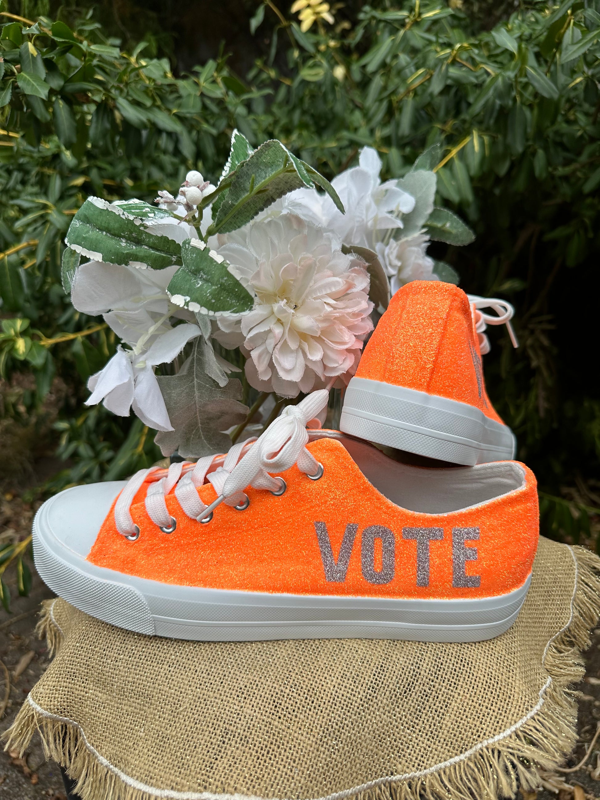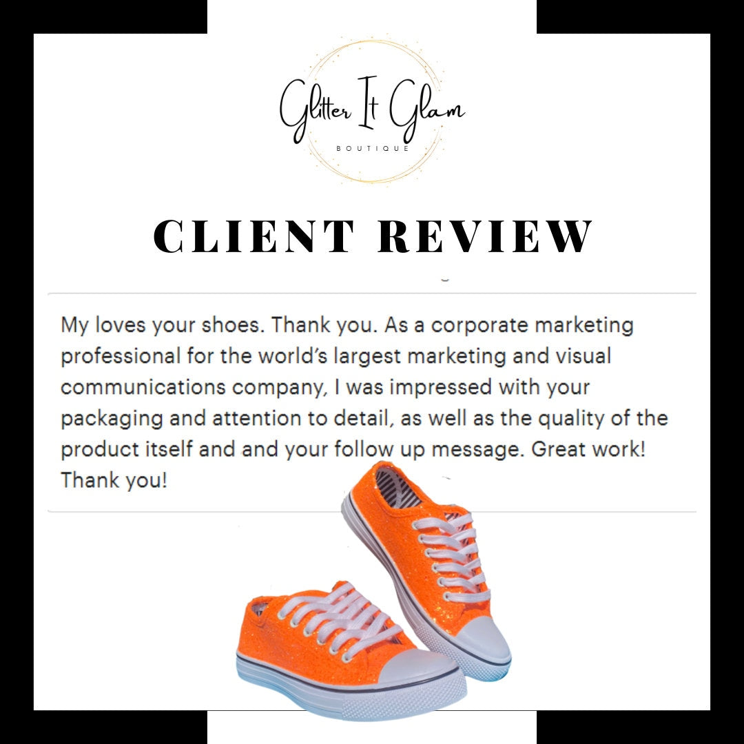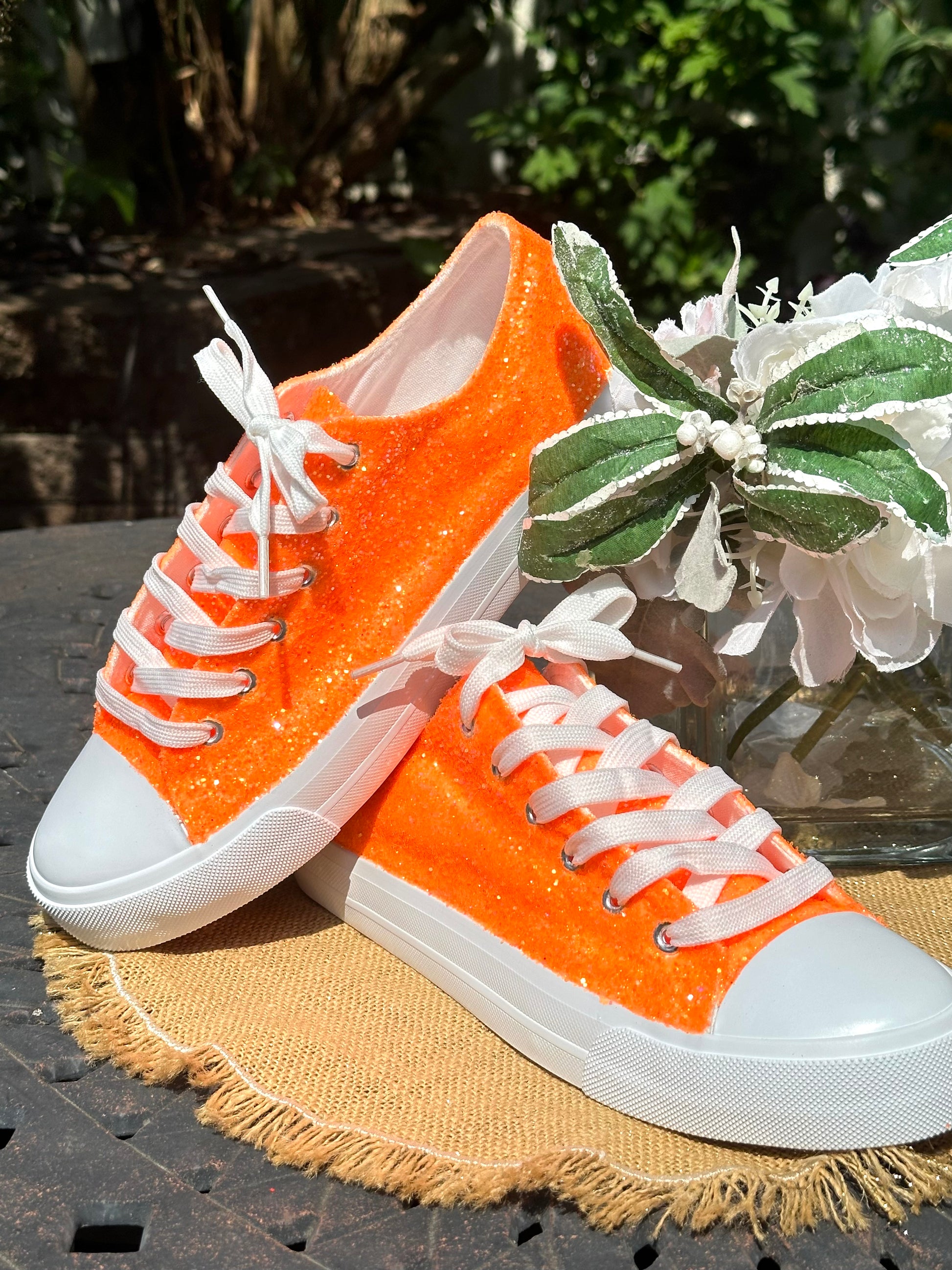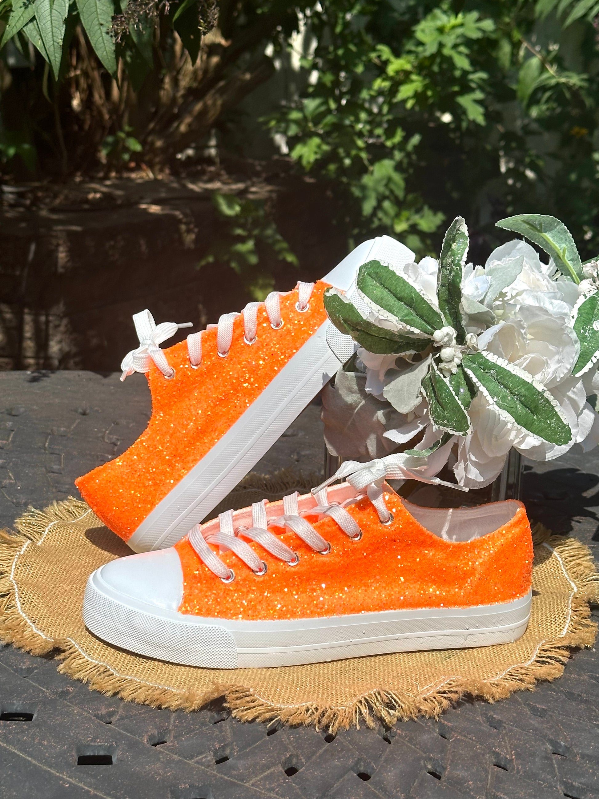 Hand Glittered unbranded canvas sneakers glittered in a gorgeous orange chunky glitter. Made to order.