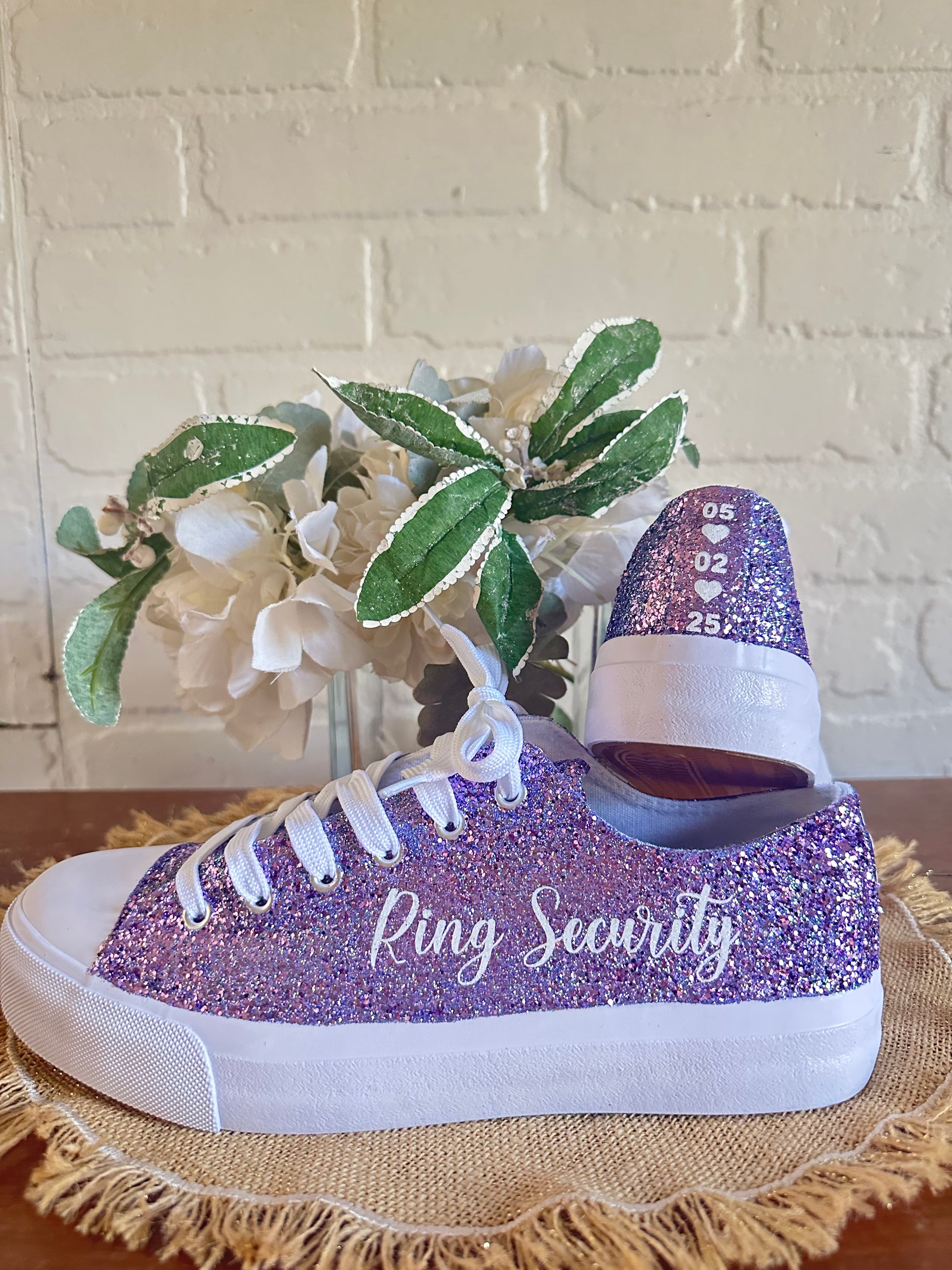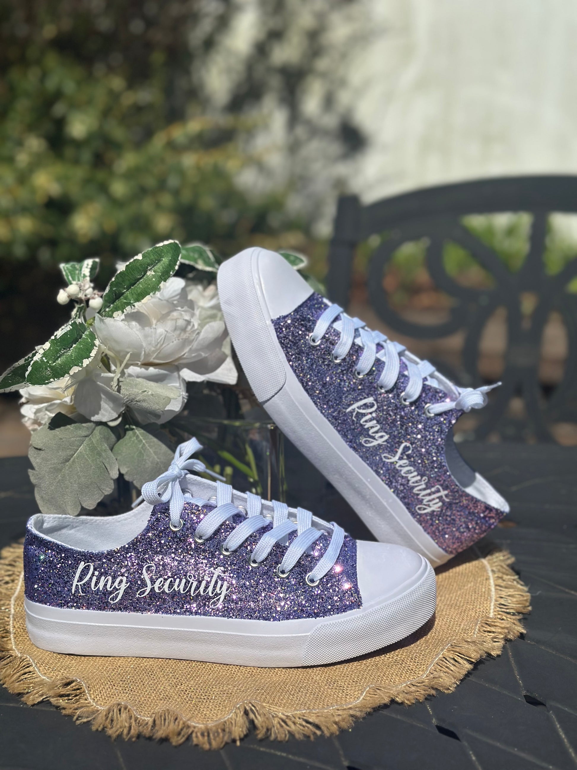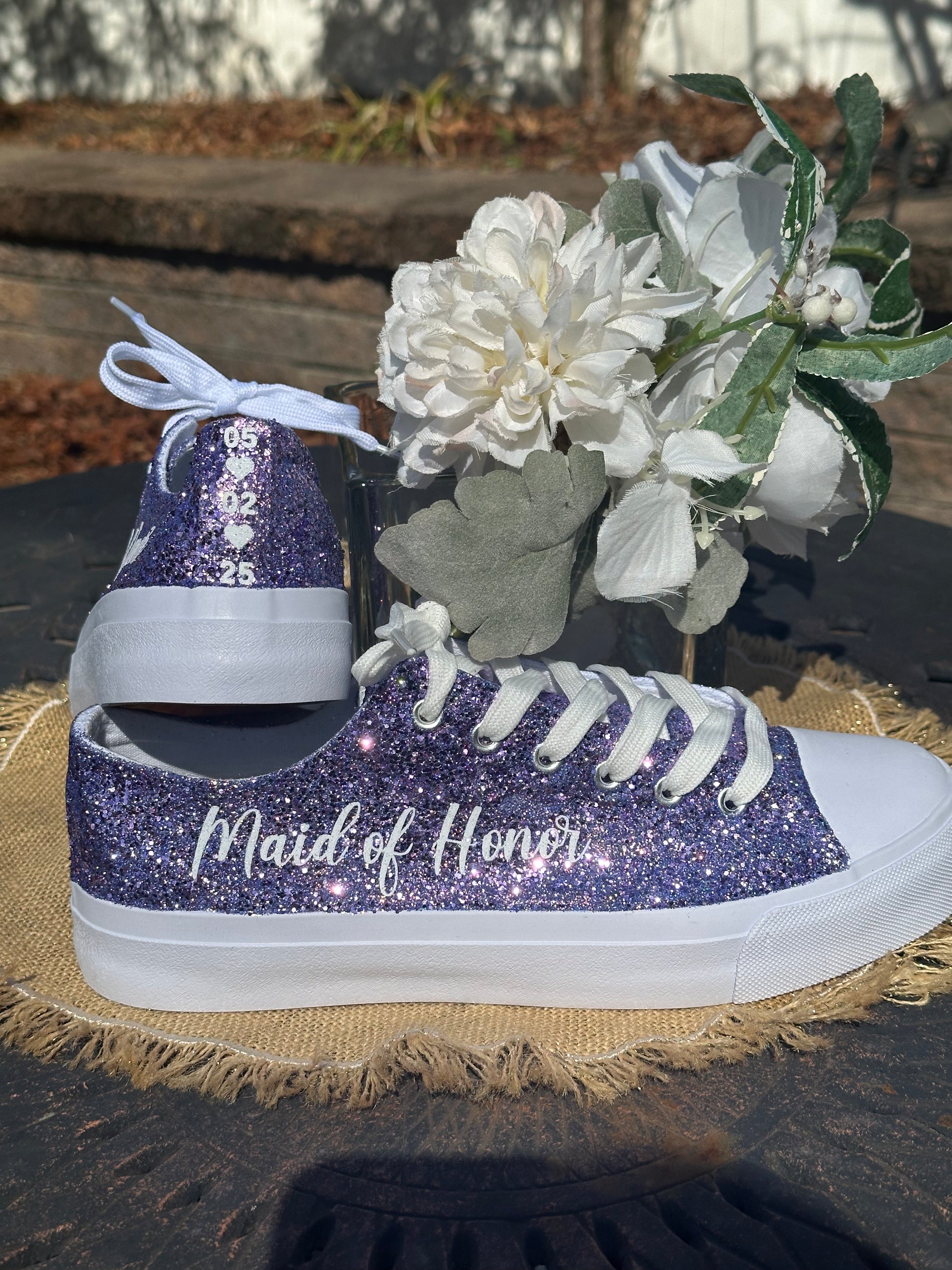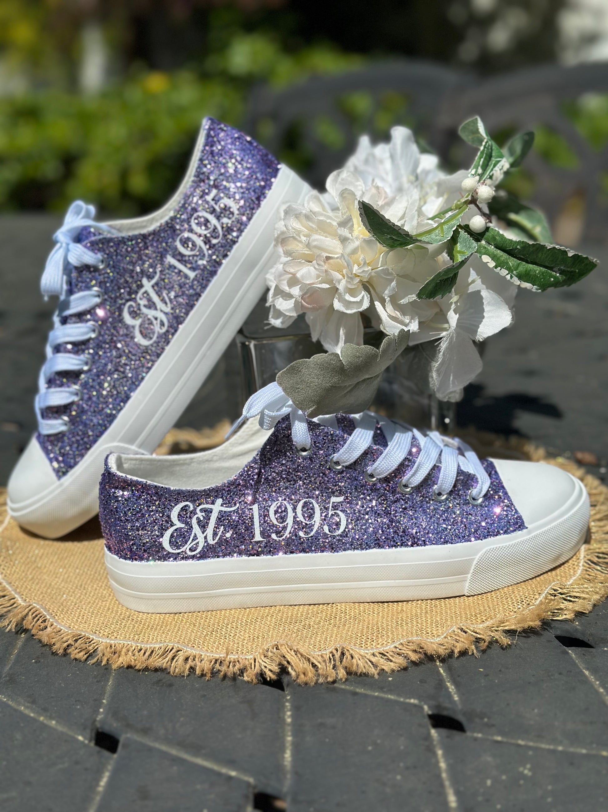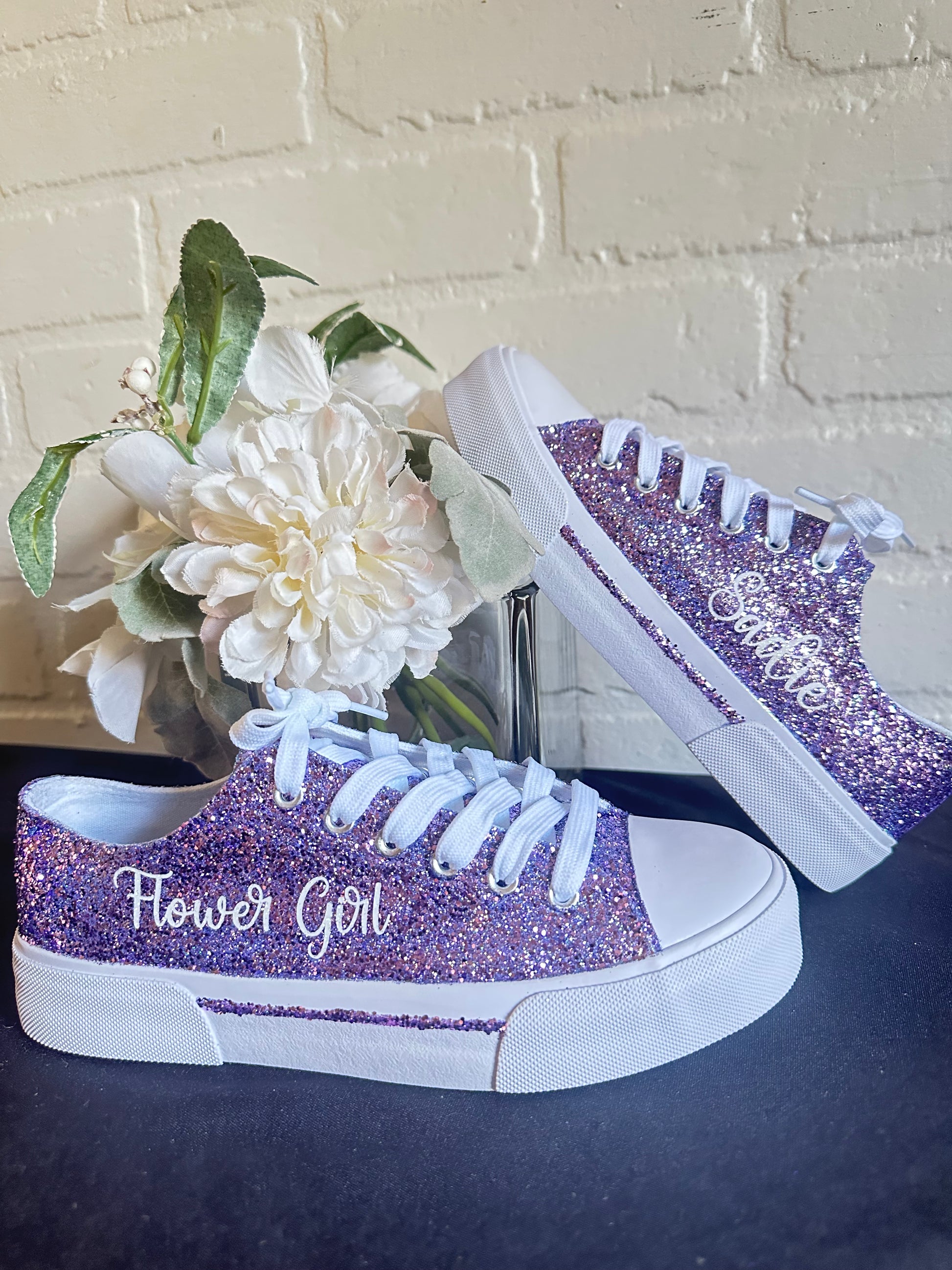 Personalized for your lilac purple wedding and made just for you! These hand glittered unbranded canvas are sneakers glittered in a gorgeous lilac purple called 'Lilac You A Lot' and are perfect for your special wedding day, bridal shower, bachelorette party or wedding weekend.