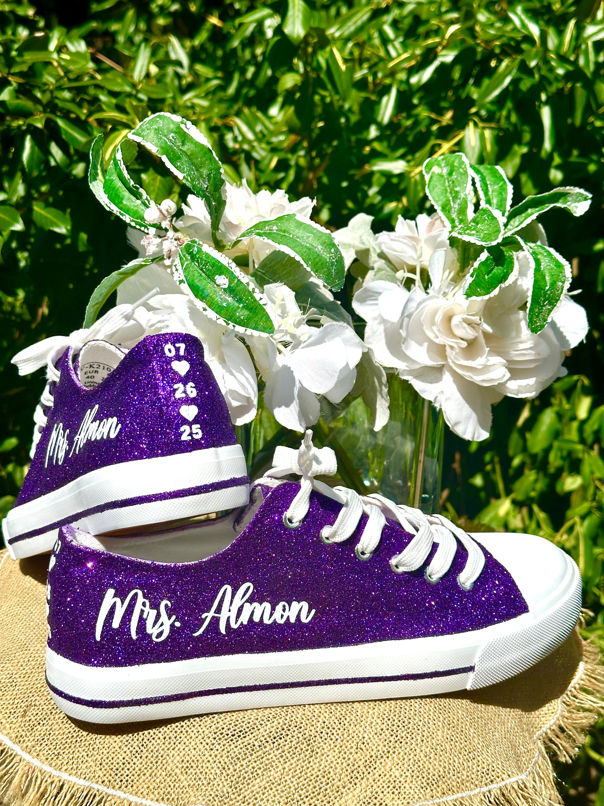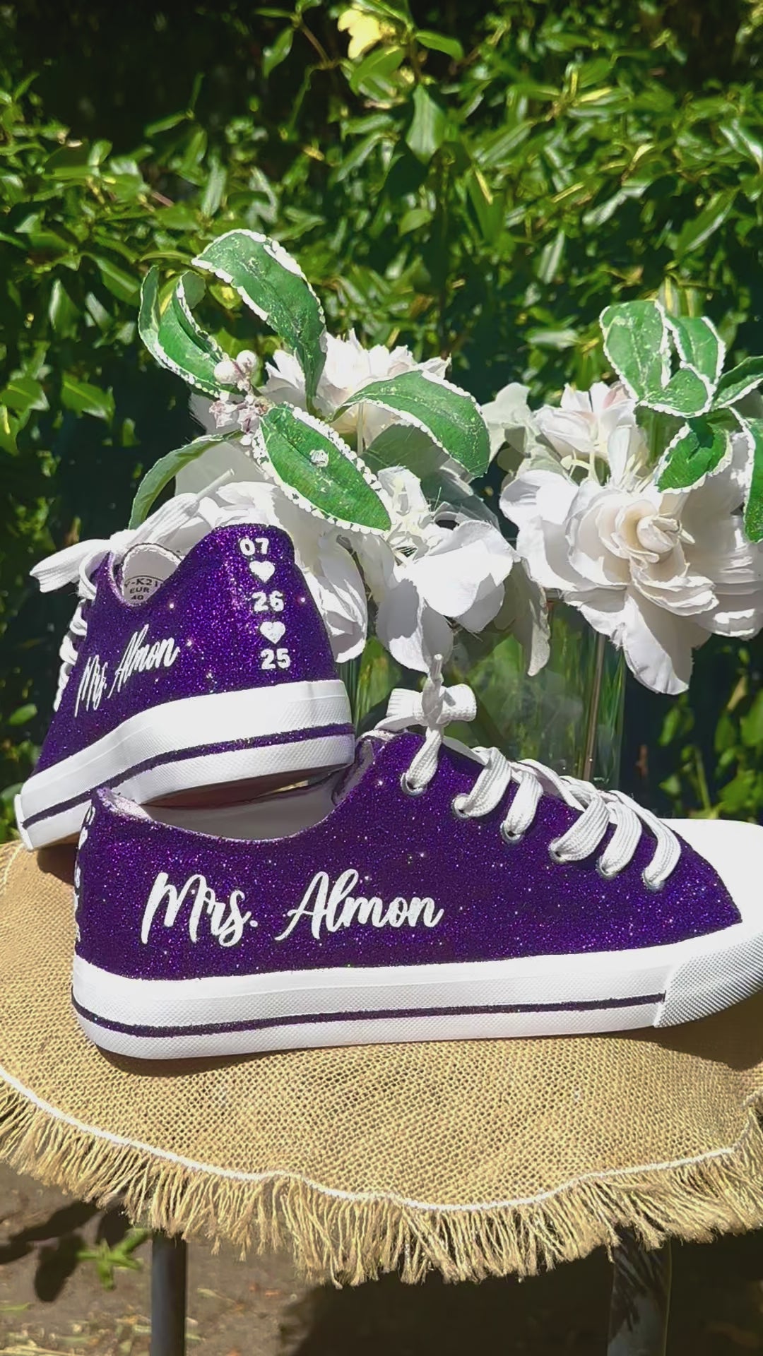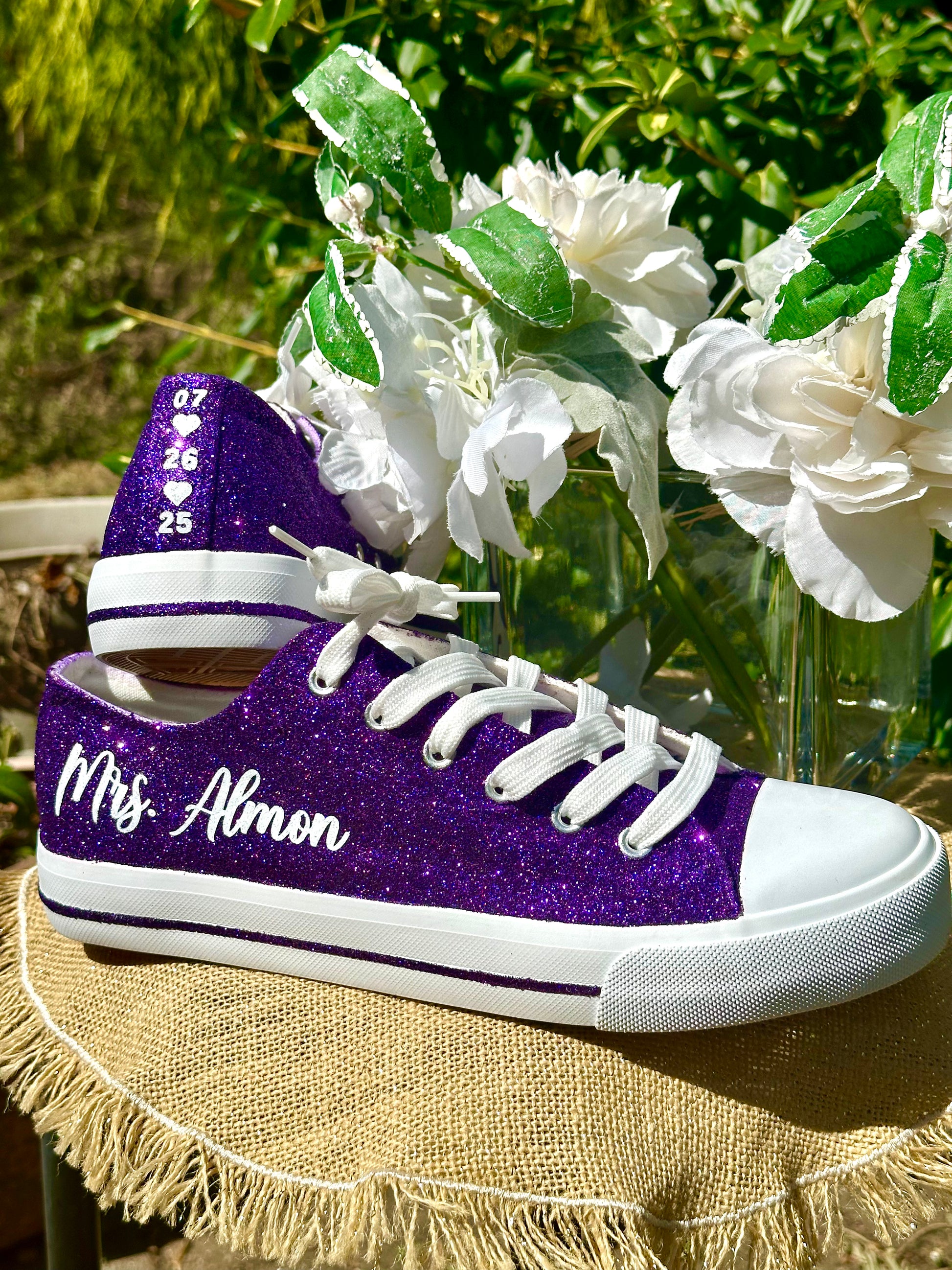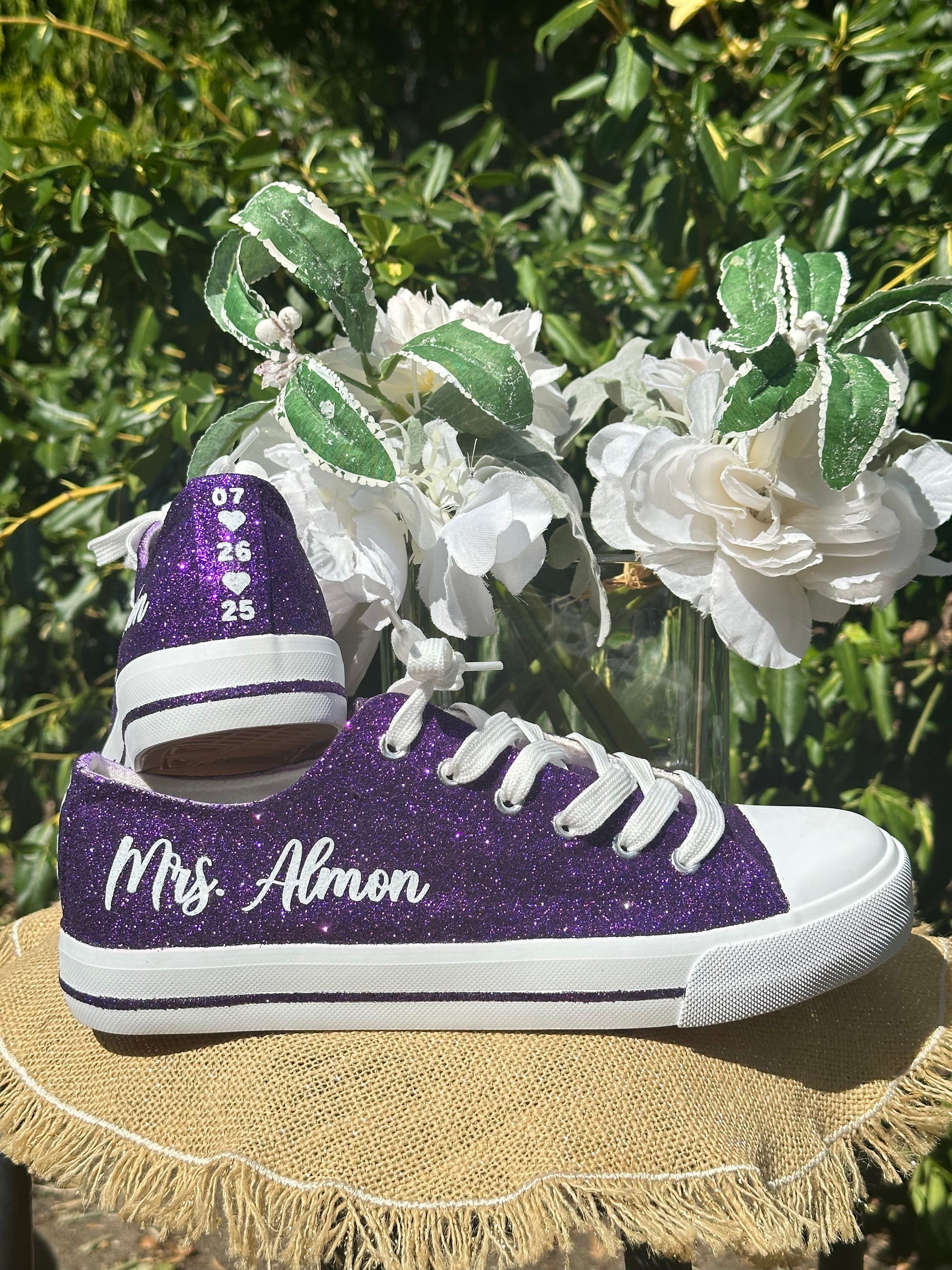 Hand Glittered unbranded canvas sneakers glittered in a gorgeous plum purple personalized just for you. Made to order.