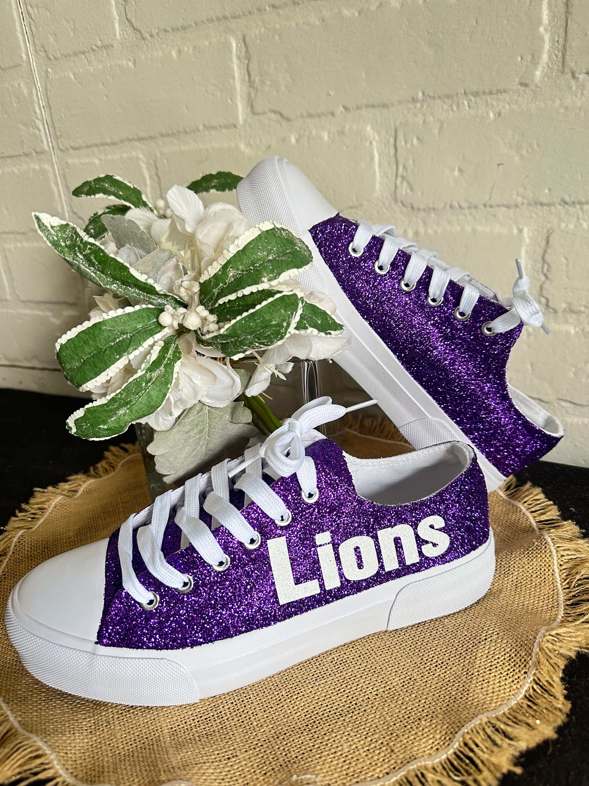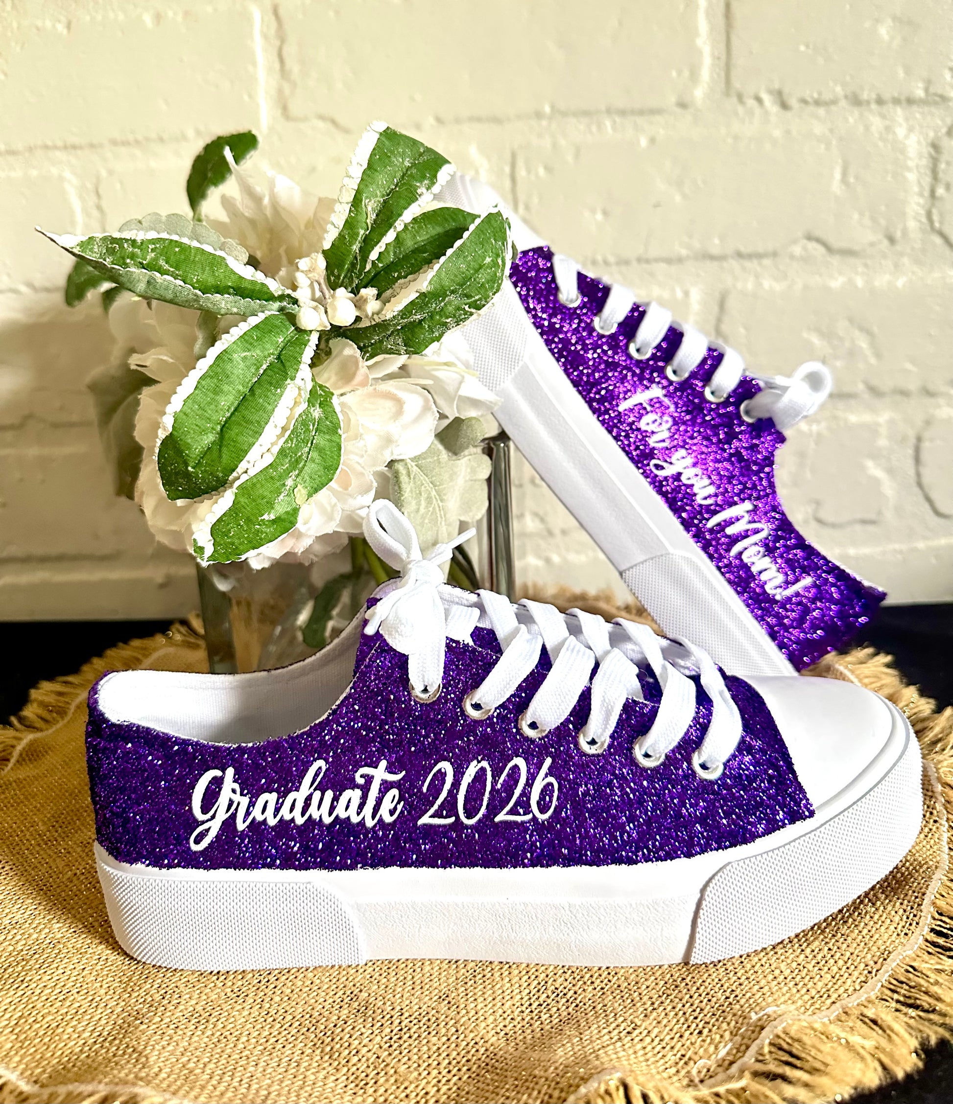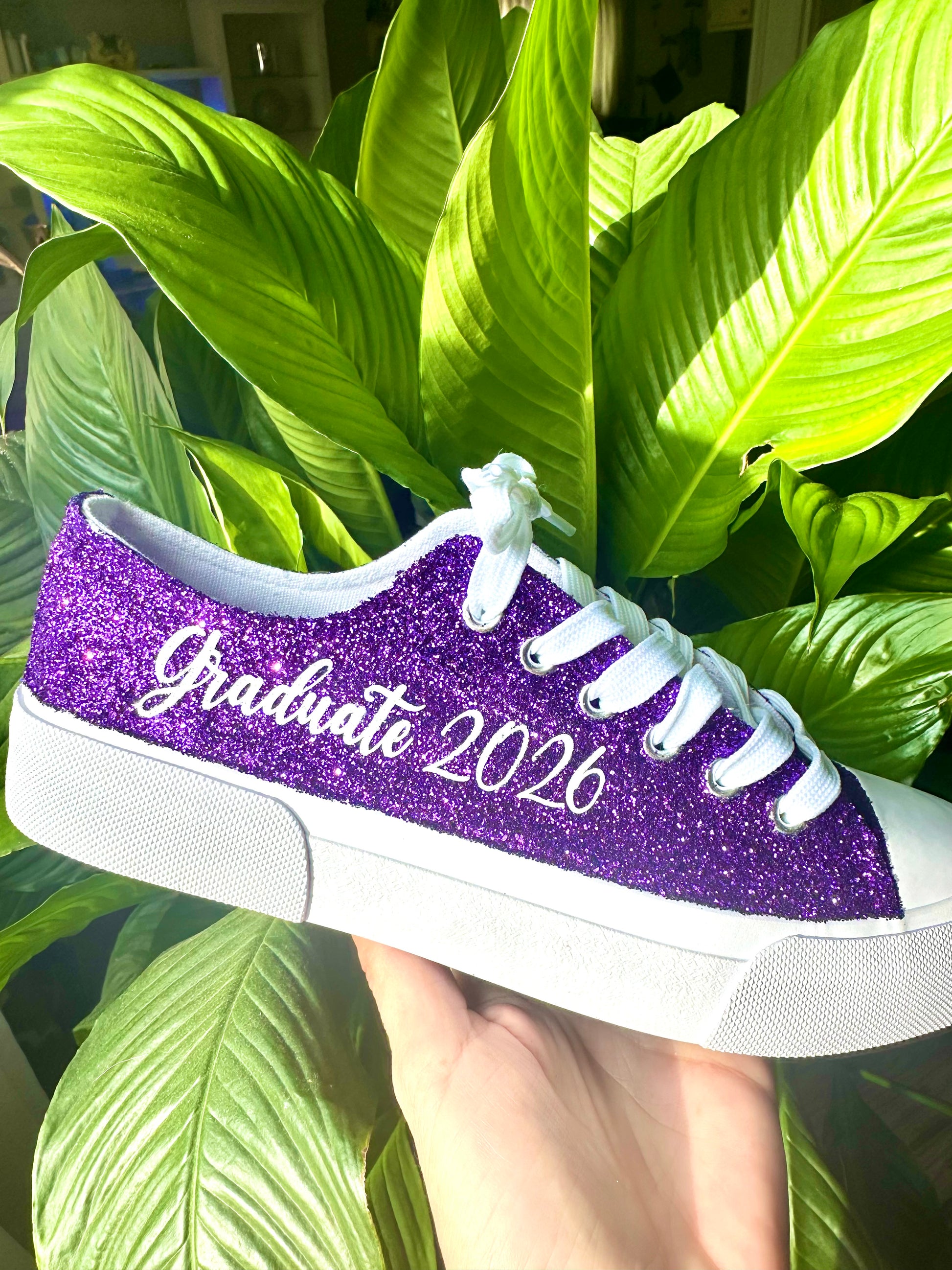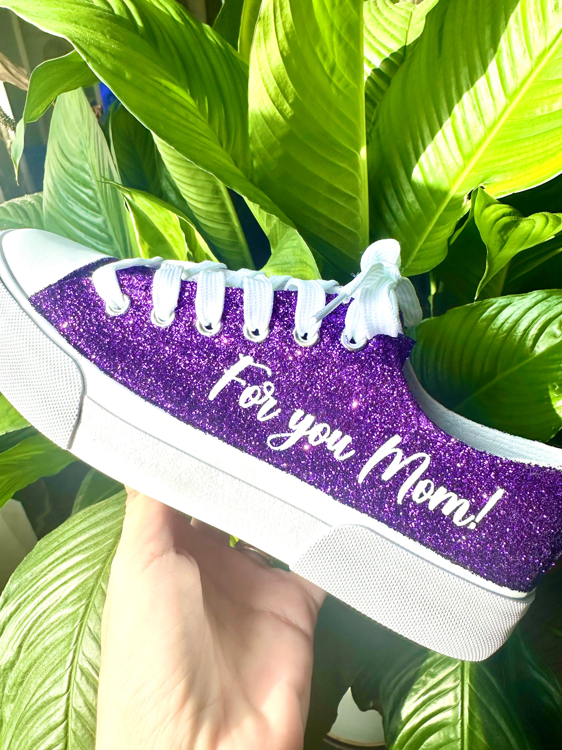 Hand Glittered unbranded canvas sneakers glittered in a gorgeous plum purple personalized just for you. Made to order.