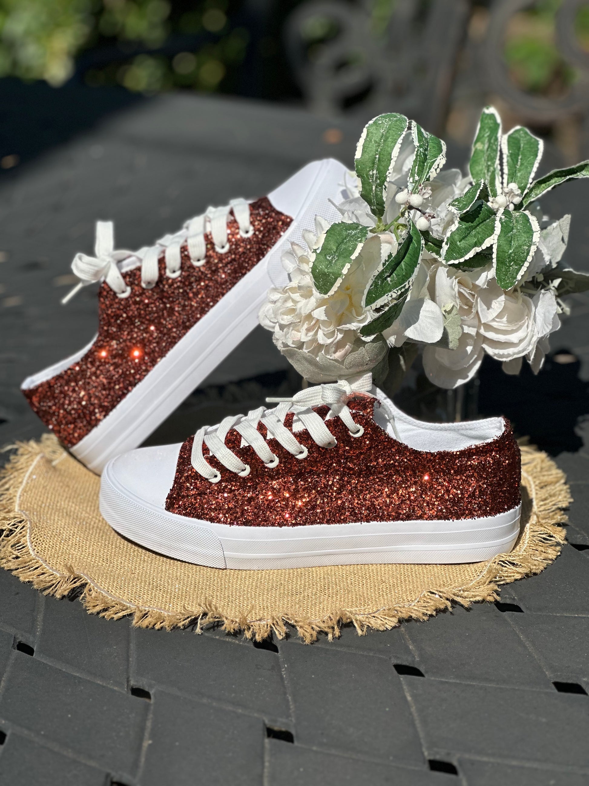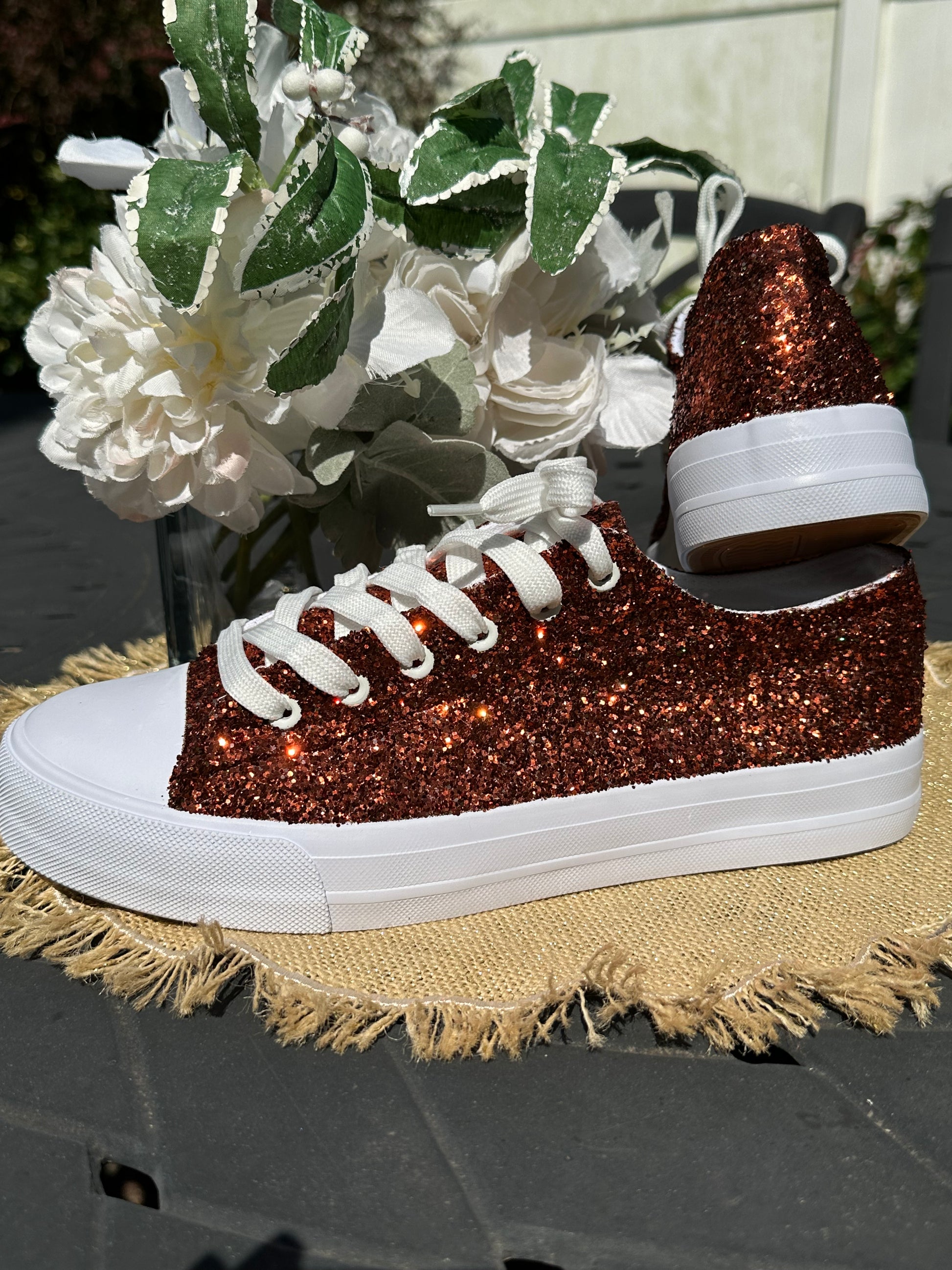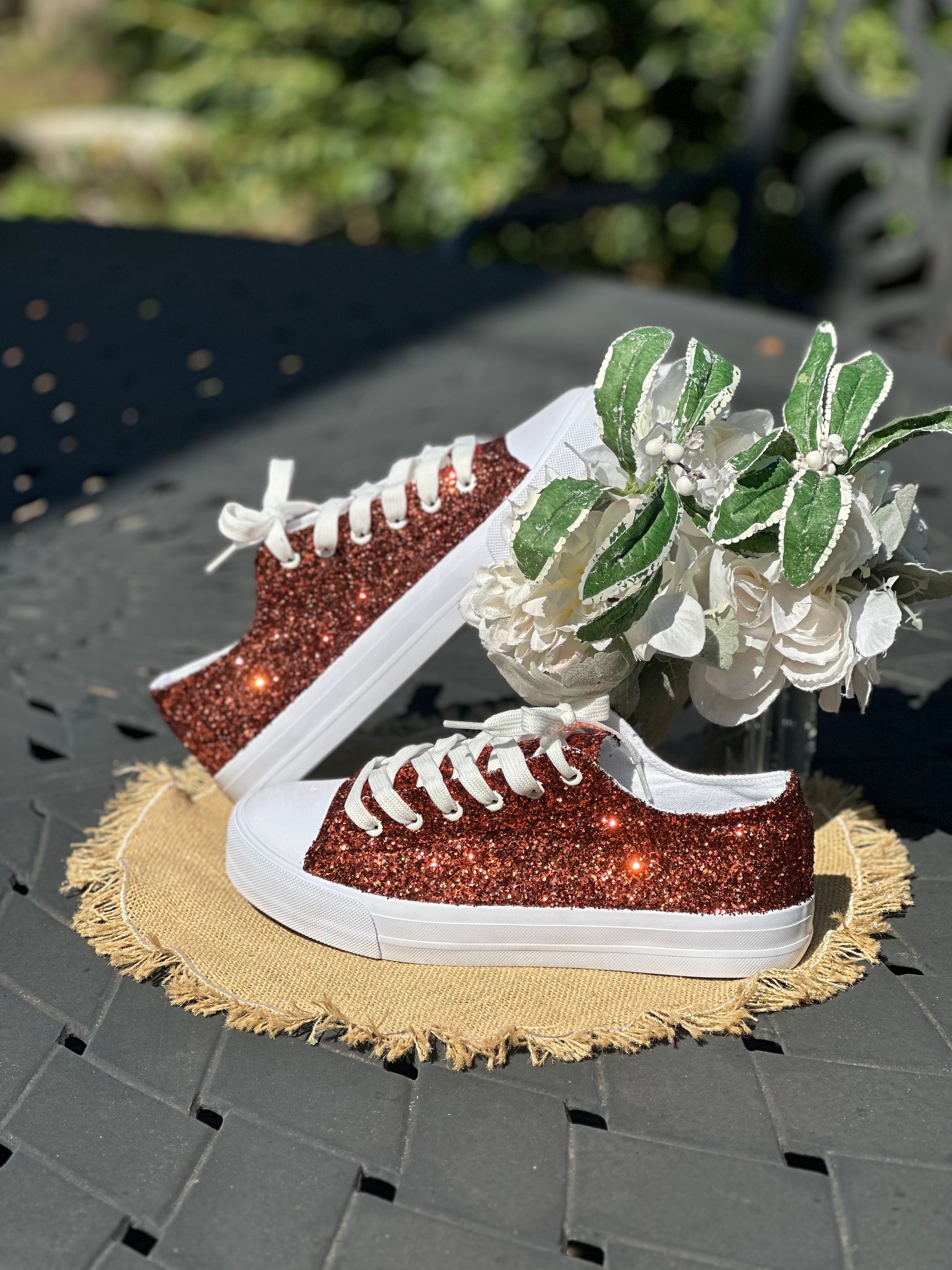 Pumpkin orange hand glittered unbranded canvas sneakers in a gorgeous chunky glitter mix. Made to order.
