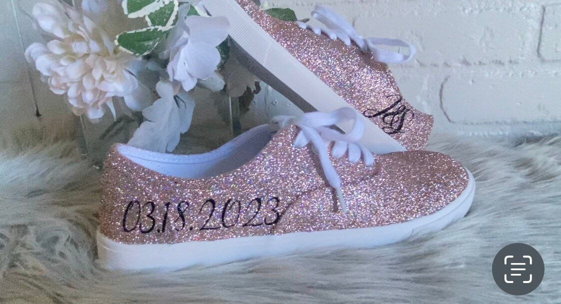 I also create glitter shoes and sneakers for bridal parties and special occasions. Kids sizes available upon request. Contact me for a custom quote. I am happy to match your bridal party colors!