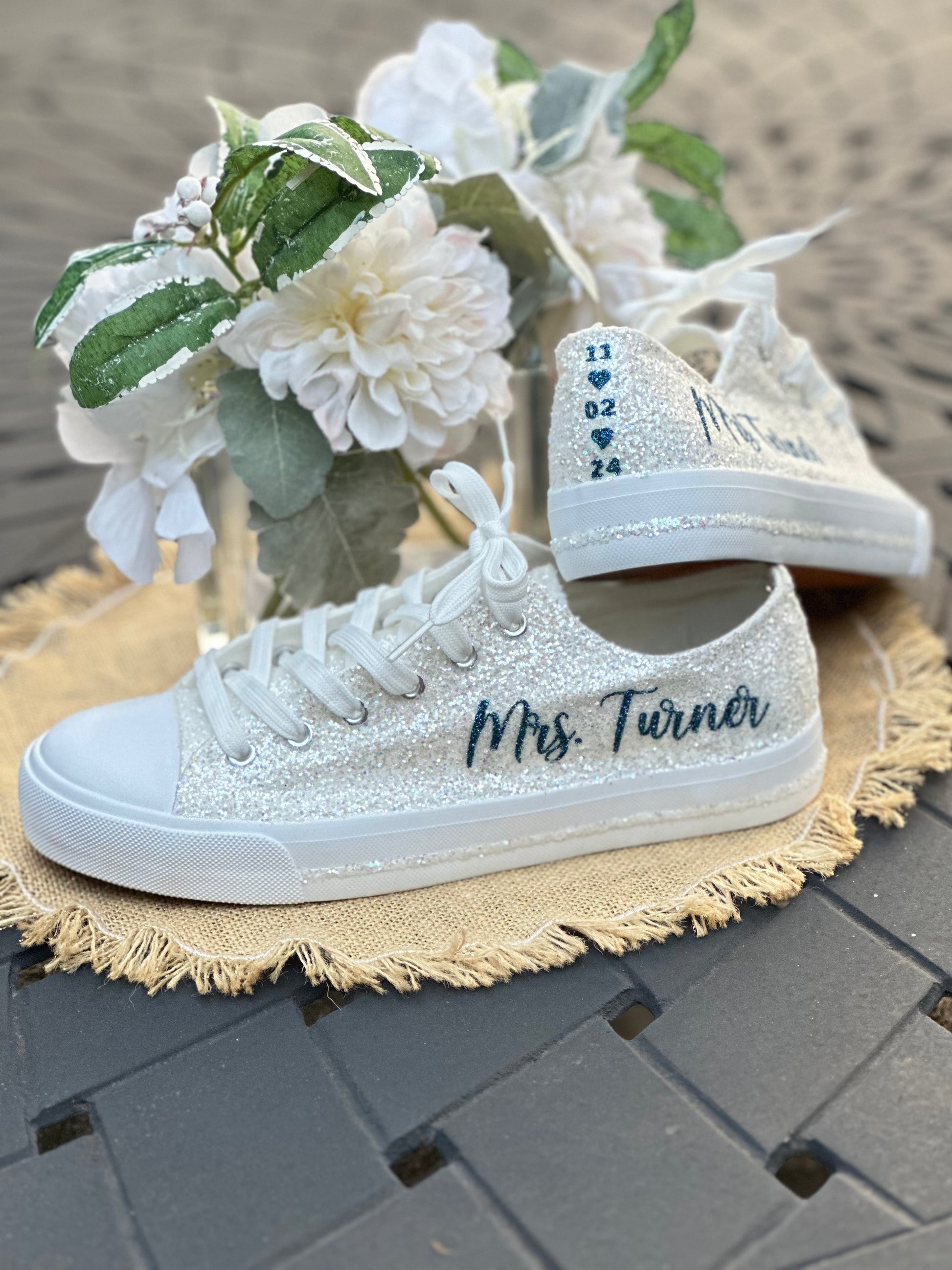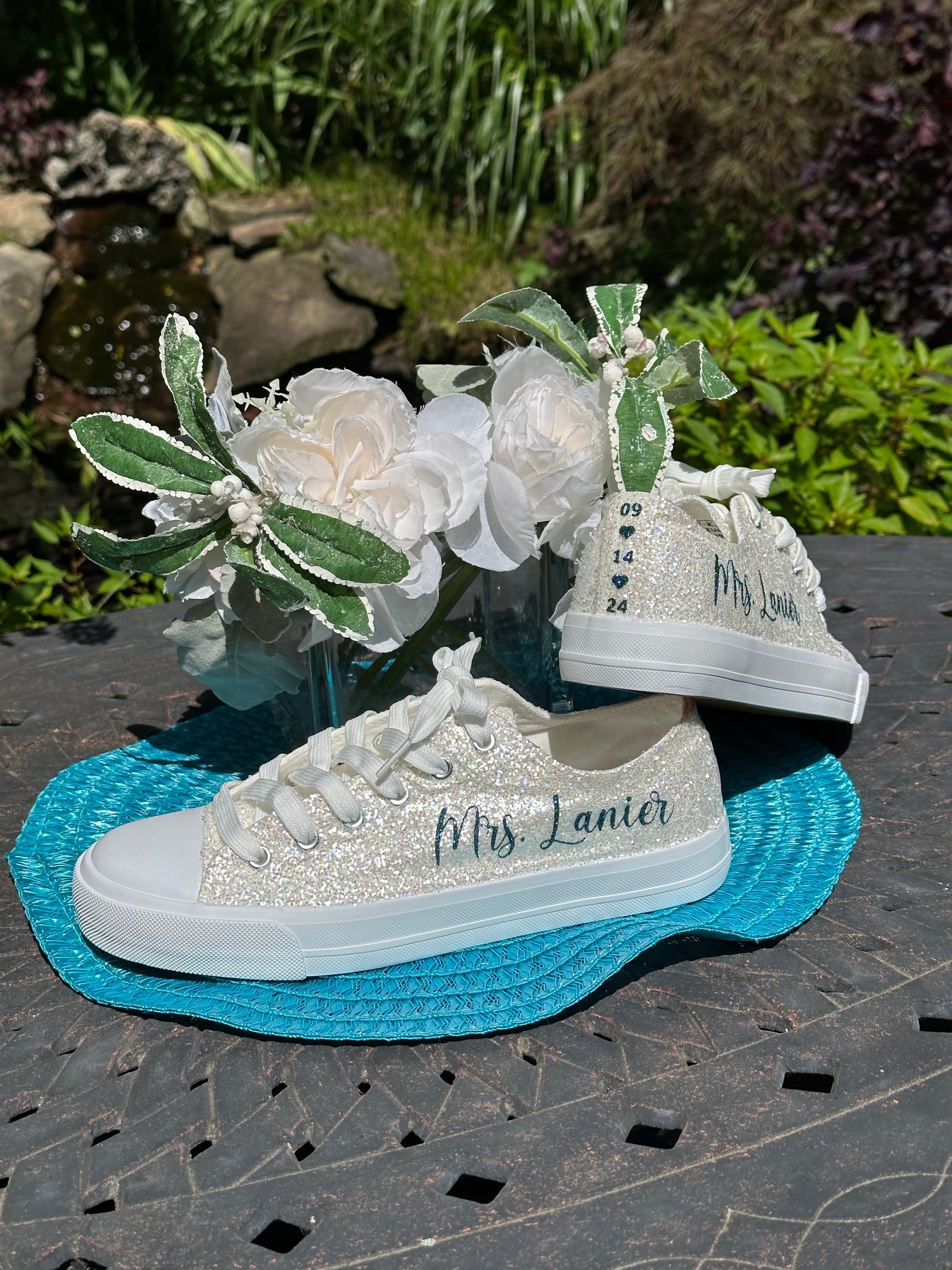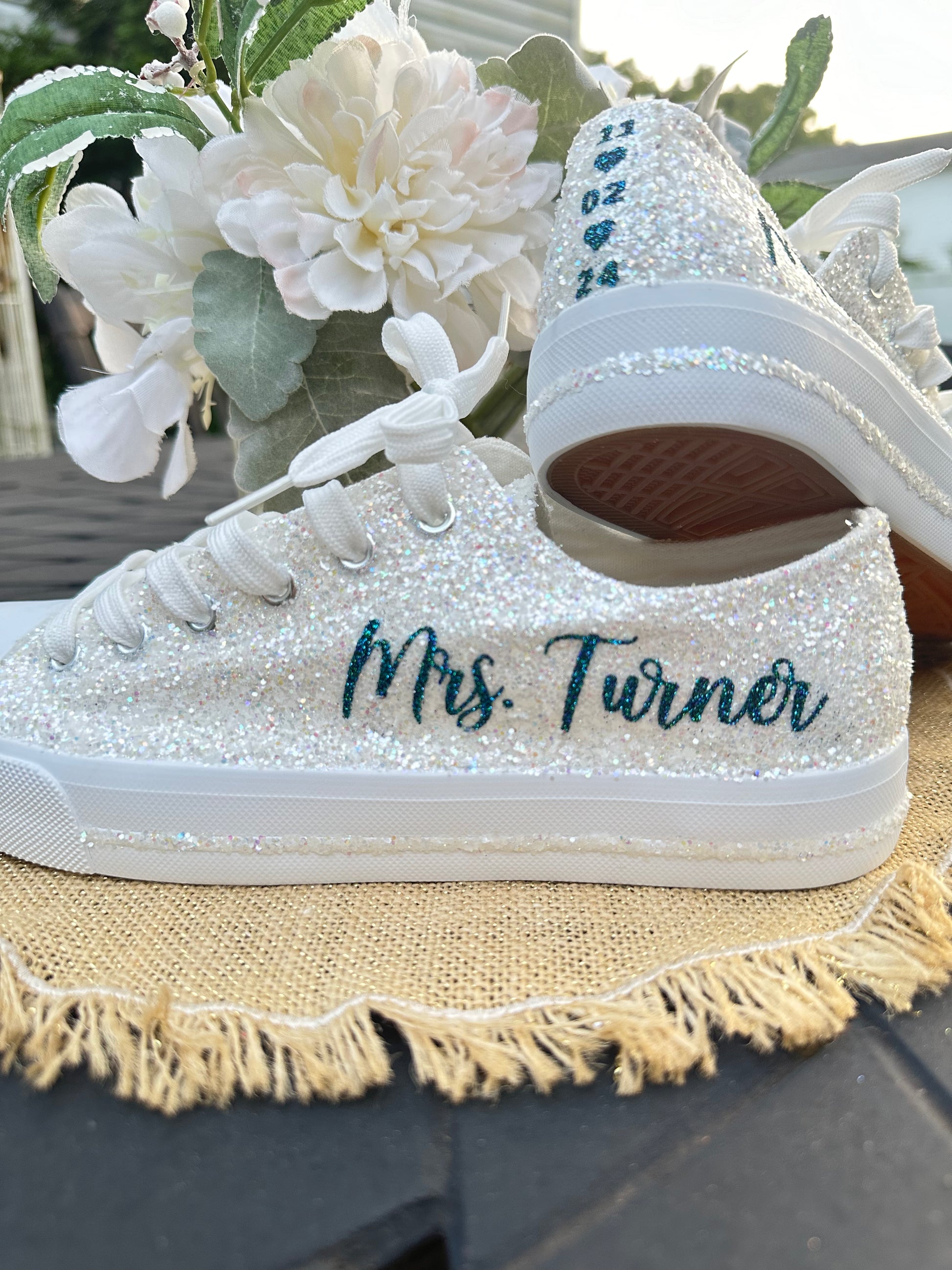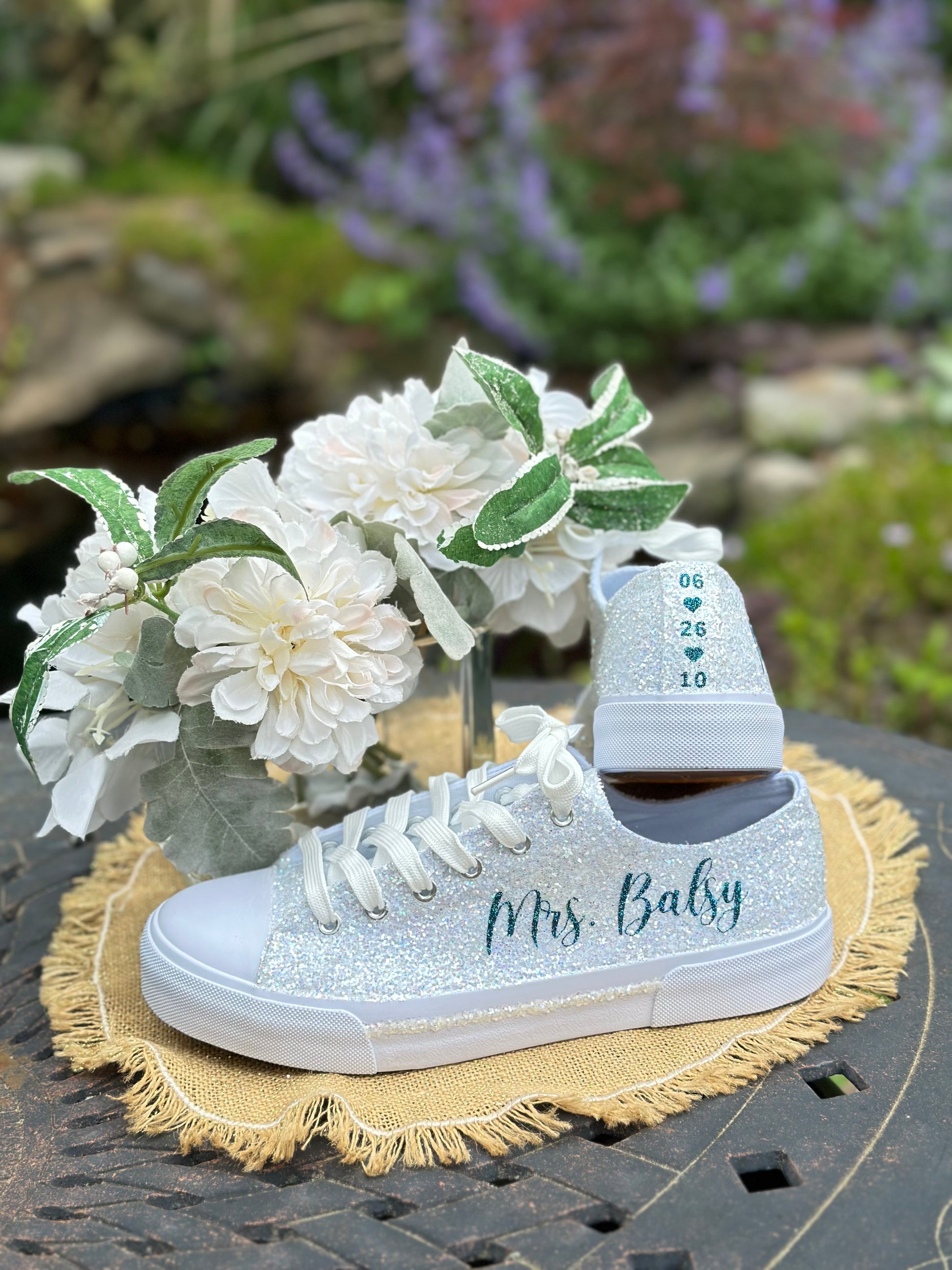 Check out our other white personalized wedding sneaker options here: https://www.etsy.com/shop/GlitterItGlam/edit?ref=edit_trust_header§ion_id=46070397