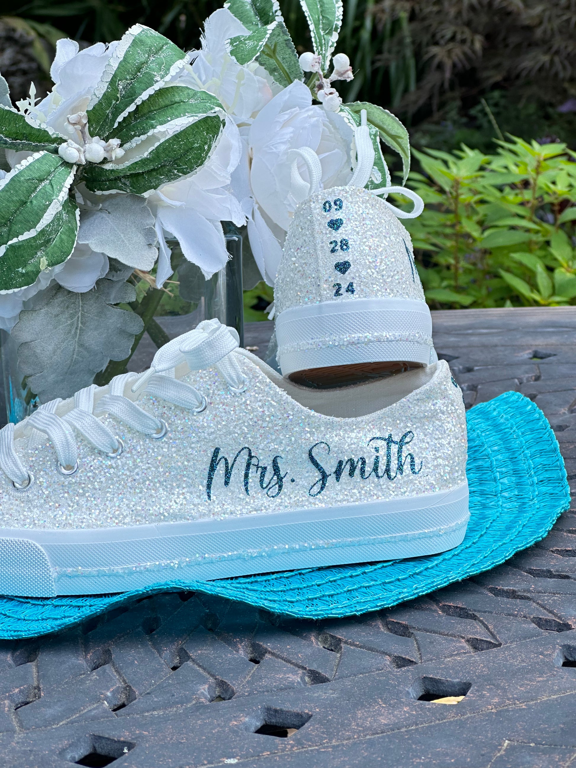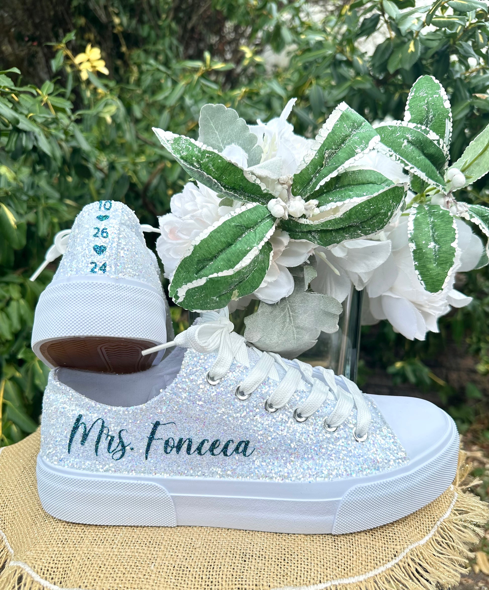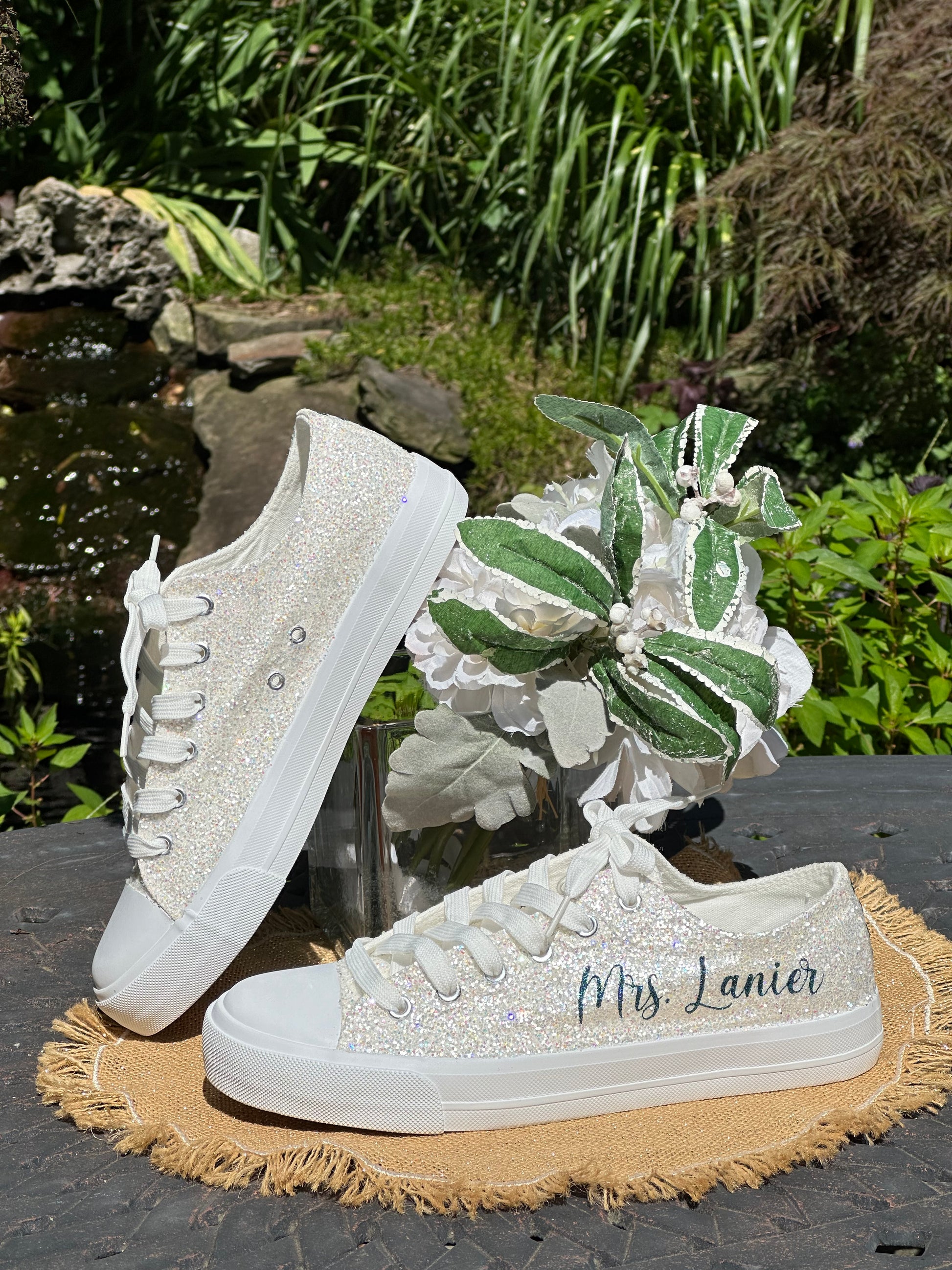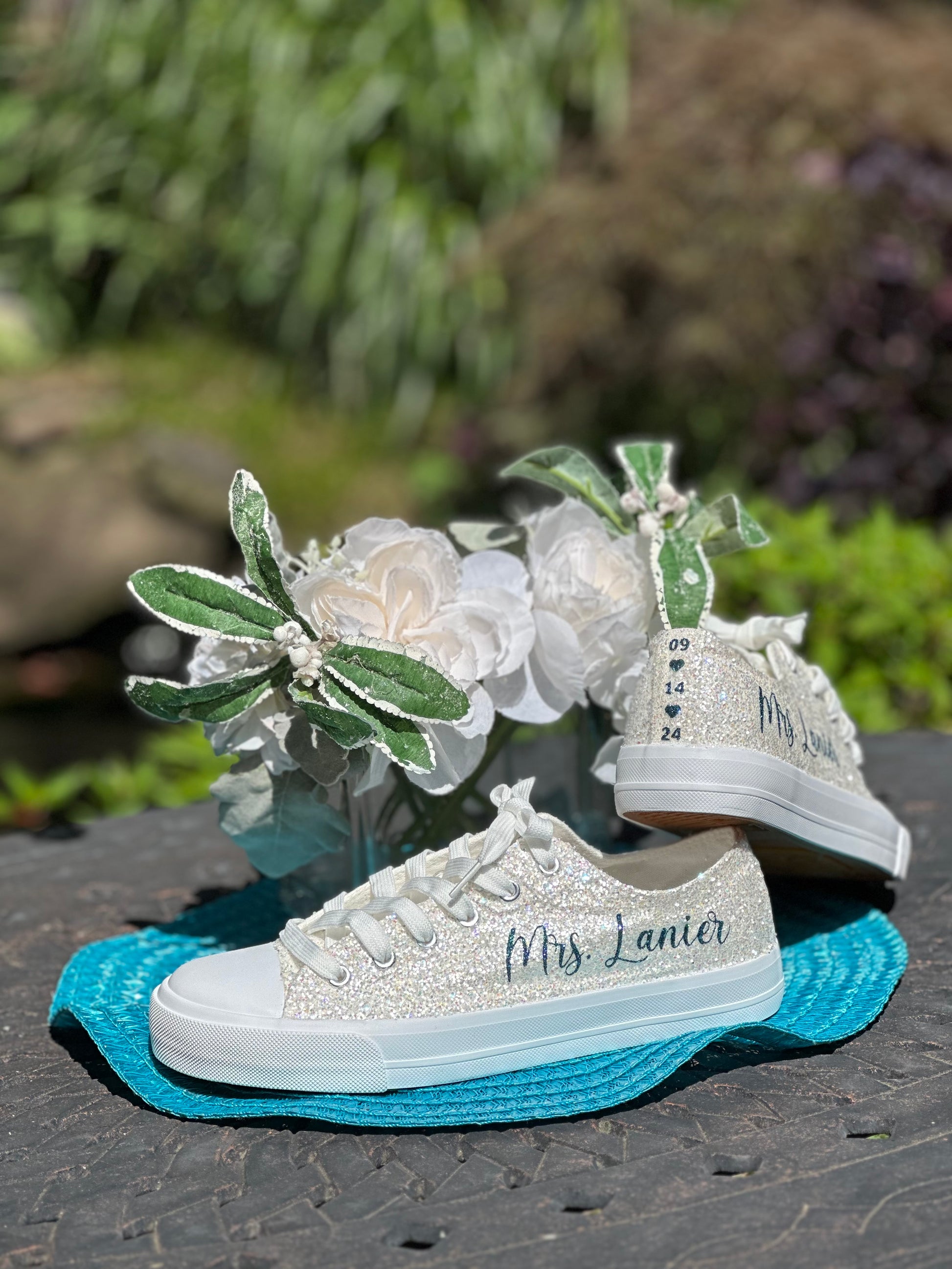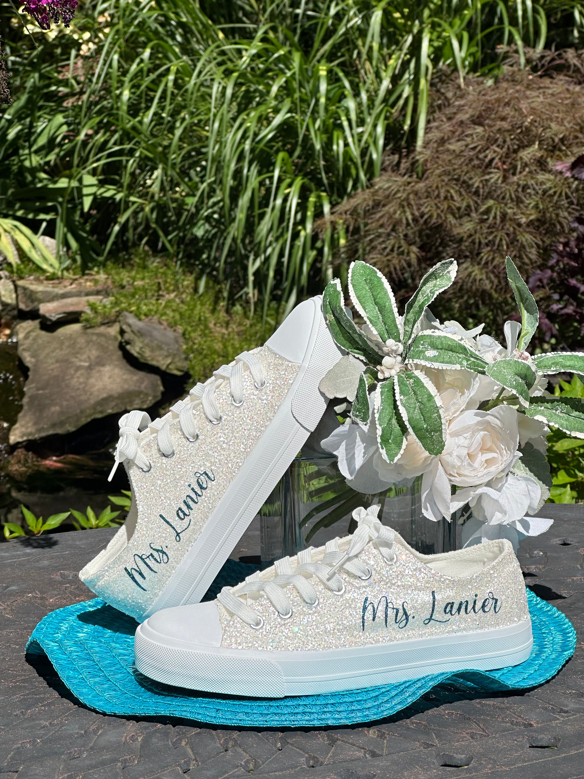 Check out our other white personalized wedding sneaker options here: https://www.etsy.com/shop/GlitterItGlam/edit?ref=edit_trust_header§ion_id=46070397