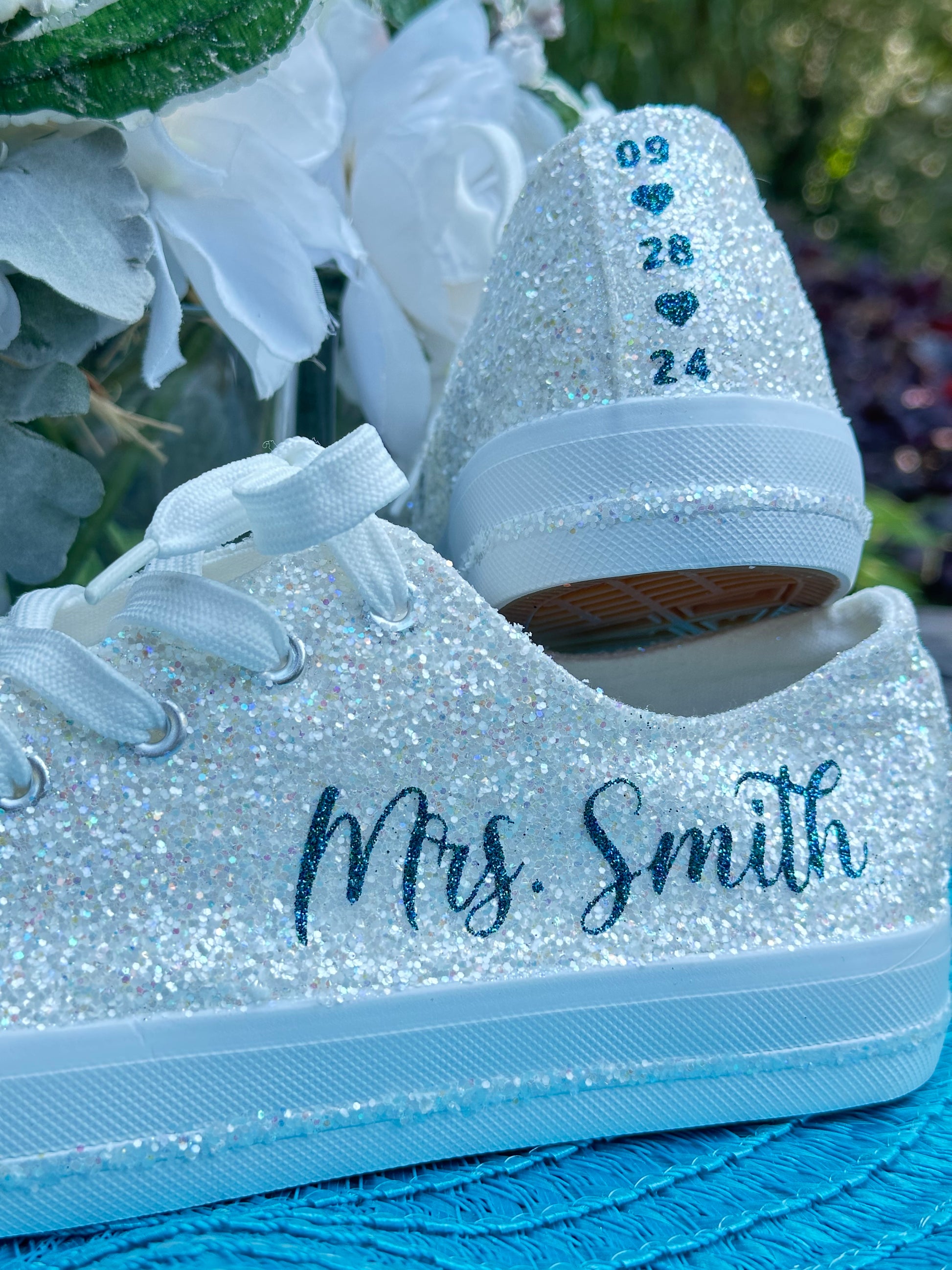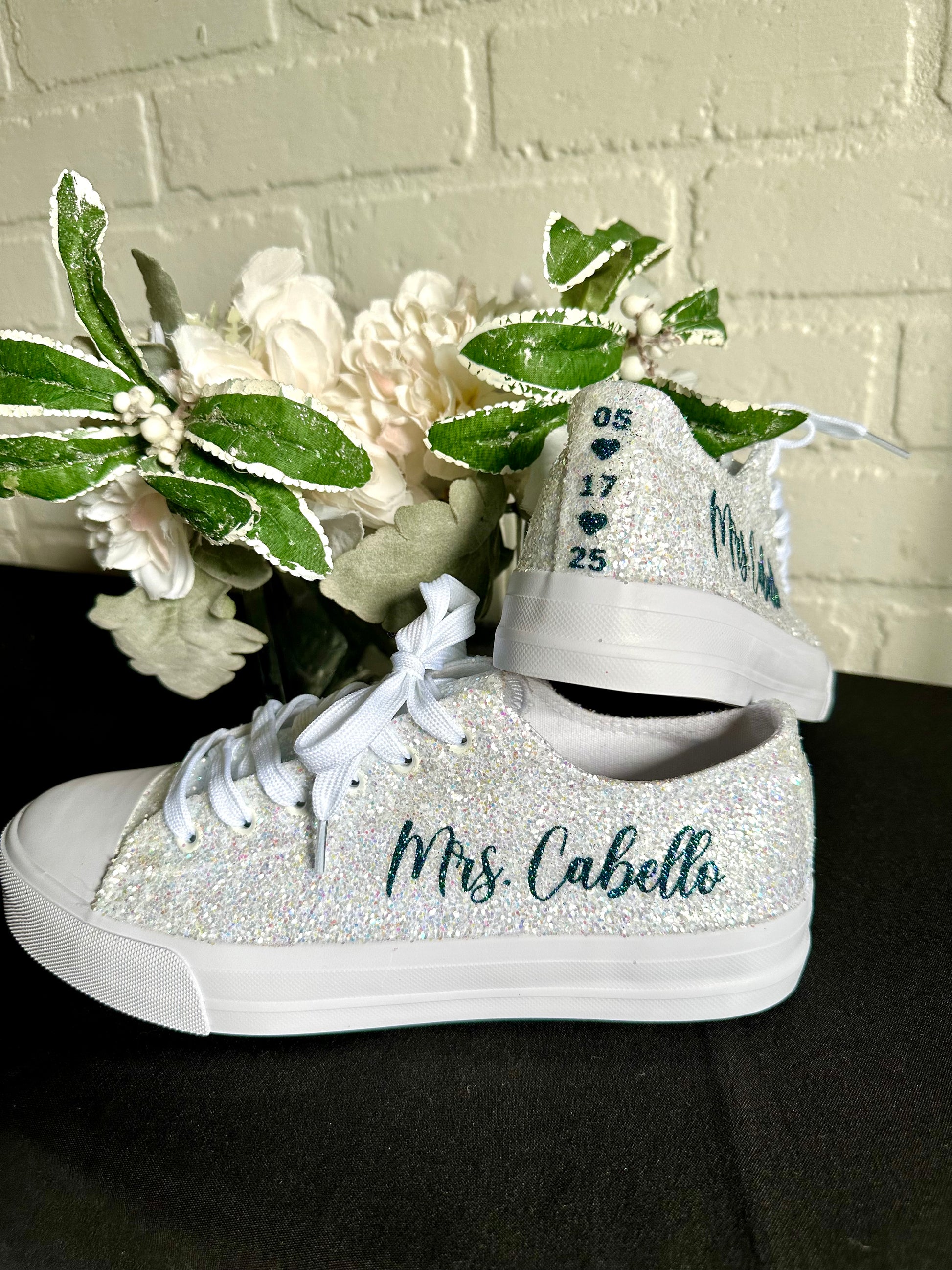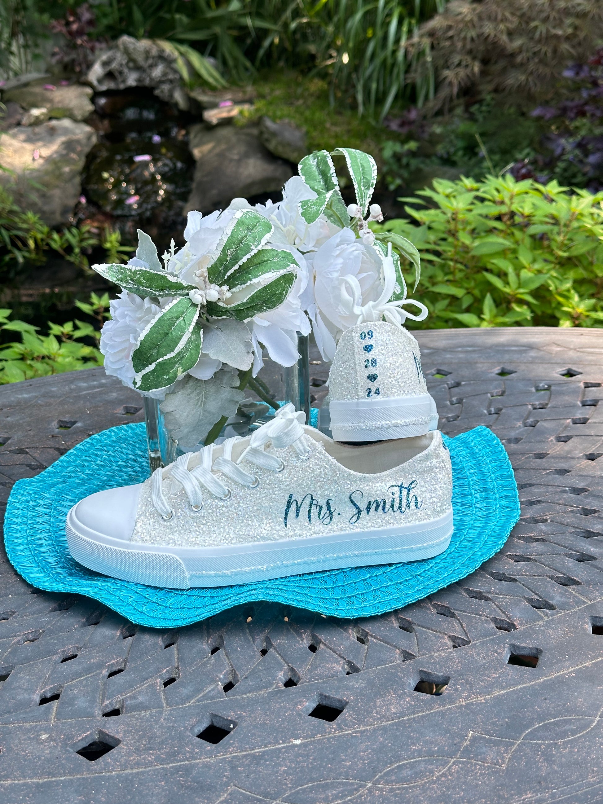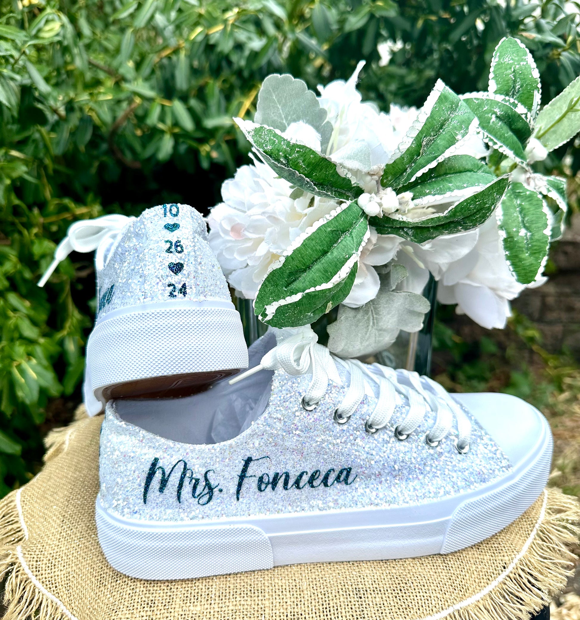 Check out our other white personalized wedding sneaker options here: https://www.etsy.com/shop/GlitterItGlam/edit?ref=edit_trust_header§ion_id=46070397